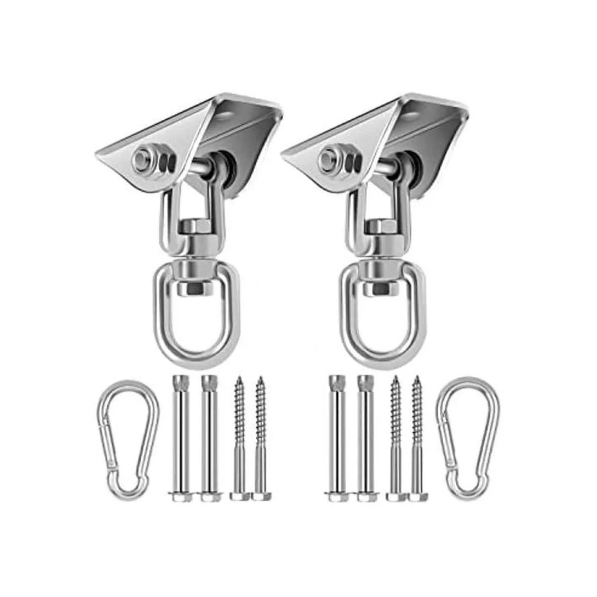 Swing Hangers Juego de perchas para hormigón de madera, 2 unidades resistentes de 1200 lb de capacidad, anticorrosión, ganchos de suspensión de acero inoxidable, 360 giratorio pesado bolsa percha para suspensión de pérdida de la hamaca, silla de yoga
