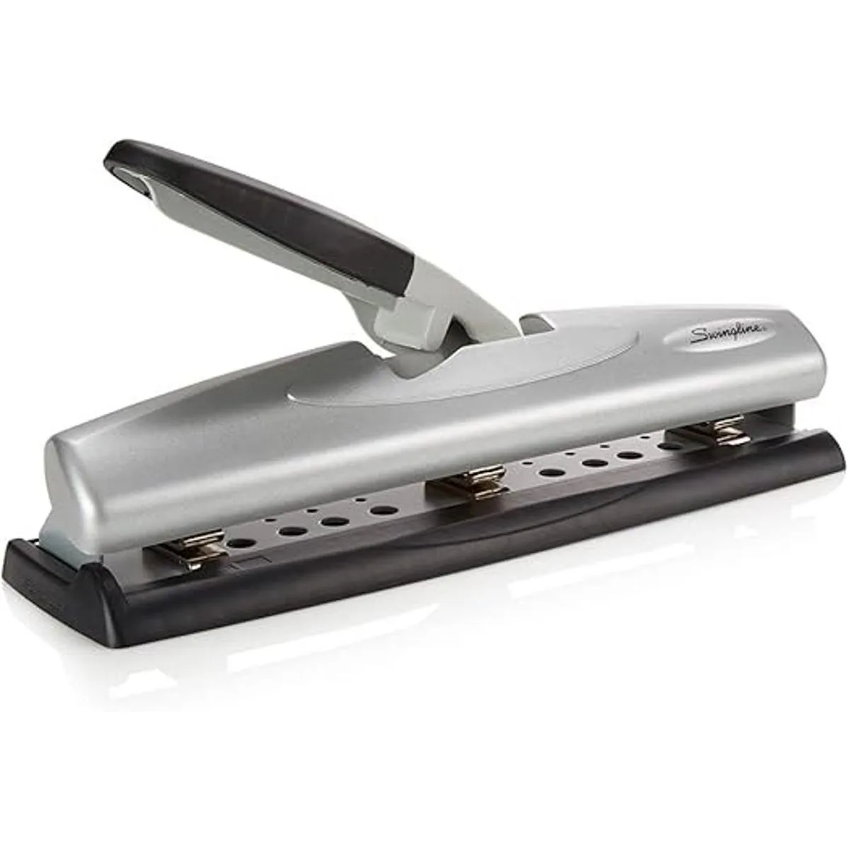 Swingline Perforadora de agujeros, perforadora de escritorio, capacidad de perforación de 12 hojas, 23 agujeros, ajustable, LightTouch, negro/plateado (74026)