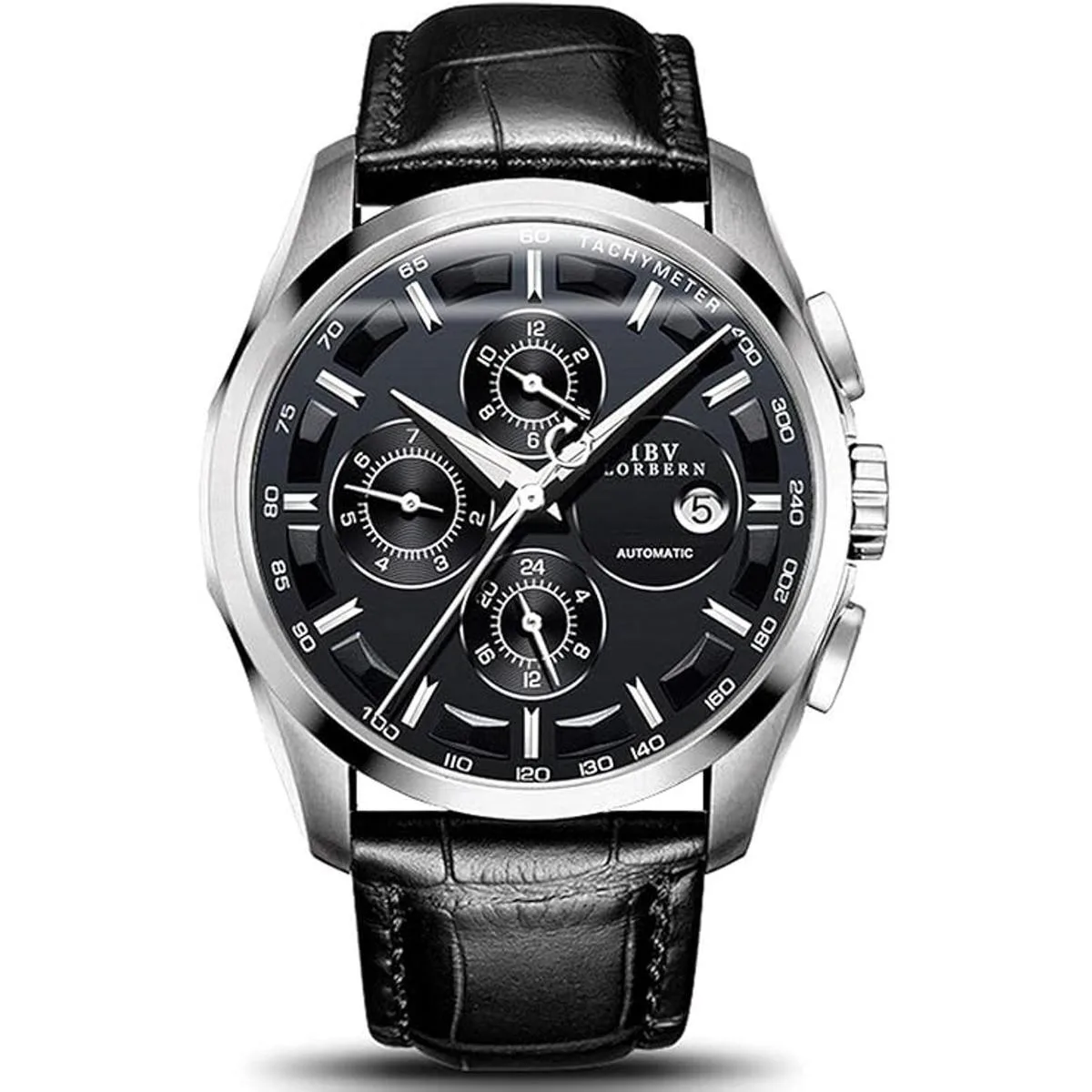 Cierre de botón de presión, seguridad y cómodo de llevar. Puedes ver el movimiento mecánico a través de la parte posterior del reloj. Este reloj tiene una subesfera de 24 horas y tres grandes manos con escala de vista analógica. Como un reloj mecánico de moda, era un bonito regalo y también tiene valor de colección. Resistente al agua hasta 3 ATM 98.4 ft.