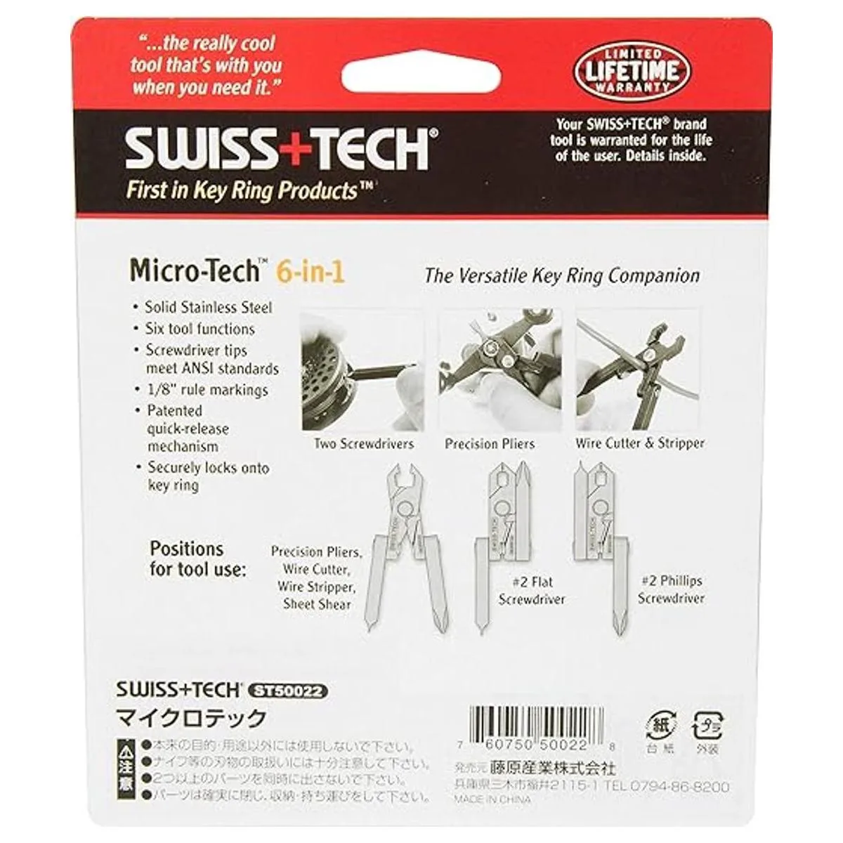 Swiss Tech Products ST50022 MicroTech, llavero herramienta multifunción 6 en 1, 1, Un solo color