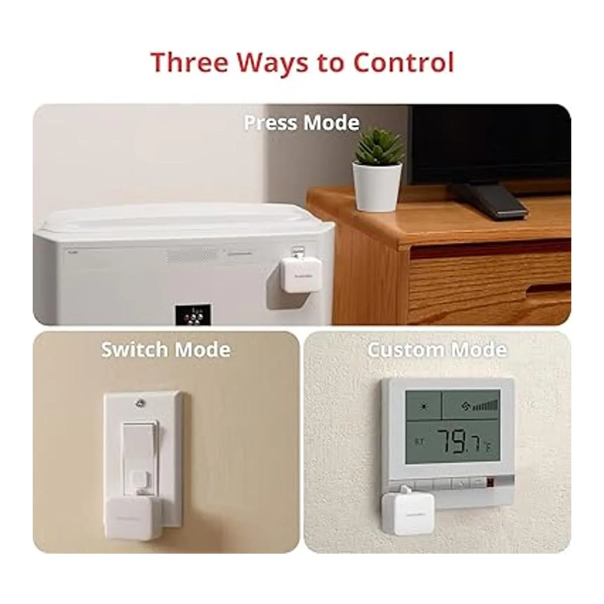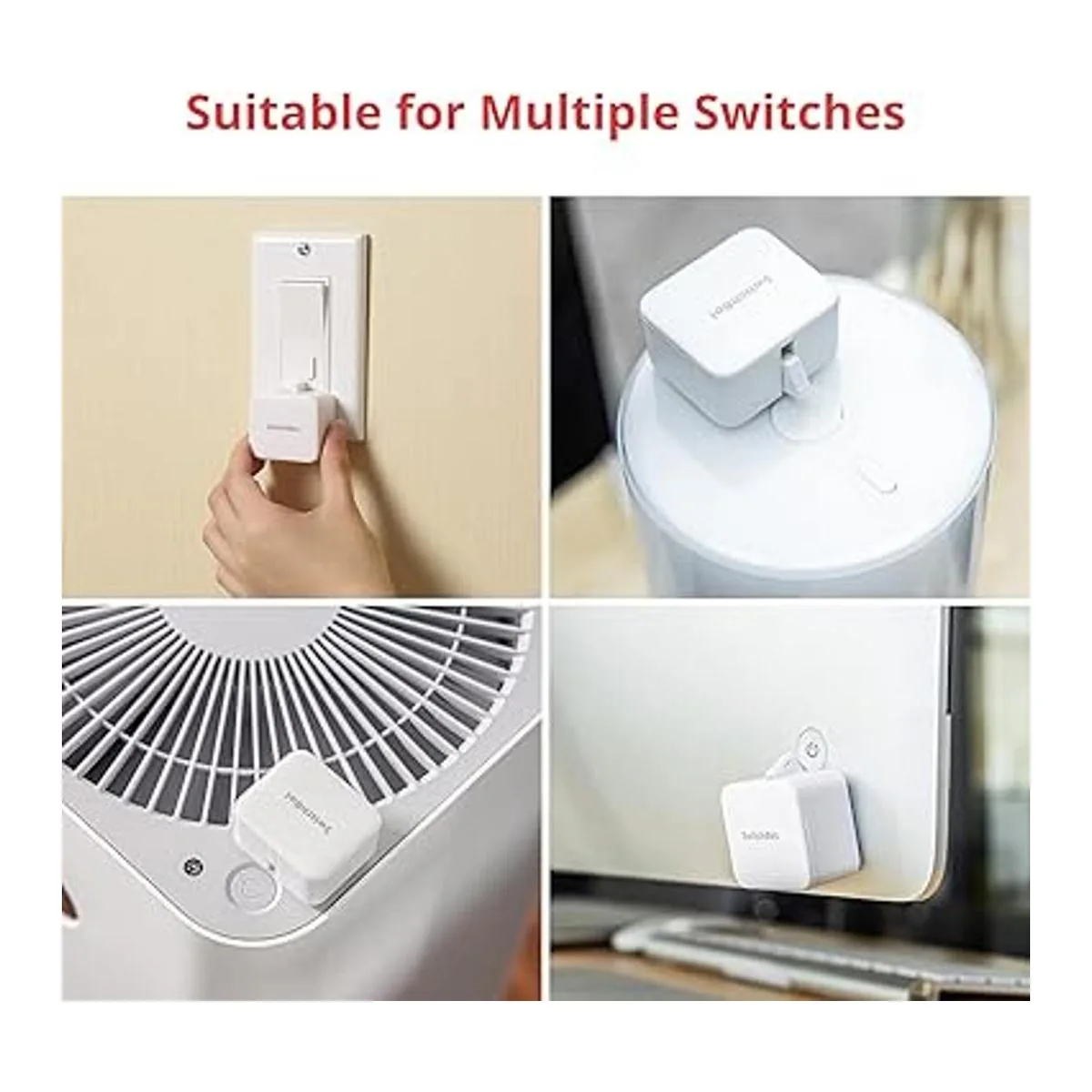Universal: funciona bien con casi cualquier interruptor basculante y botón de cualquier electrodoméstico. Pulsador de botón inteligente para tu hogar inteligente. Compatible con modo de pulsación/interruptor. Con la calcomanía adicional incluida, el modo de interruptor ayuda a encender y apagar tu luz.