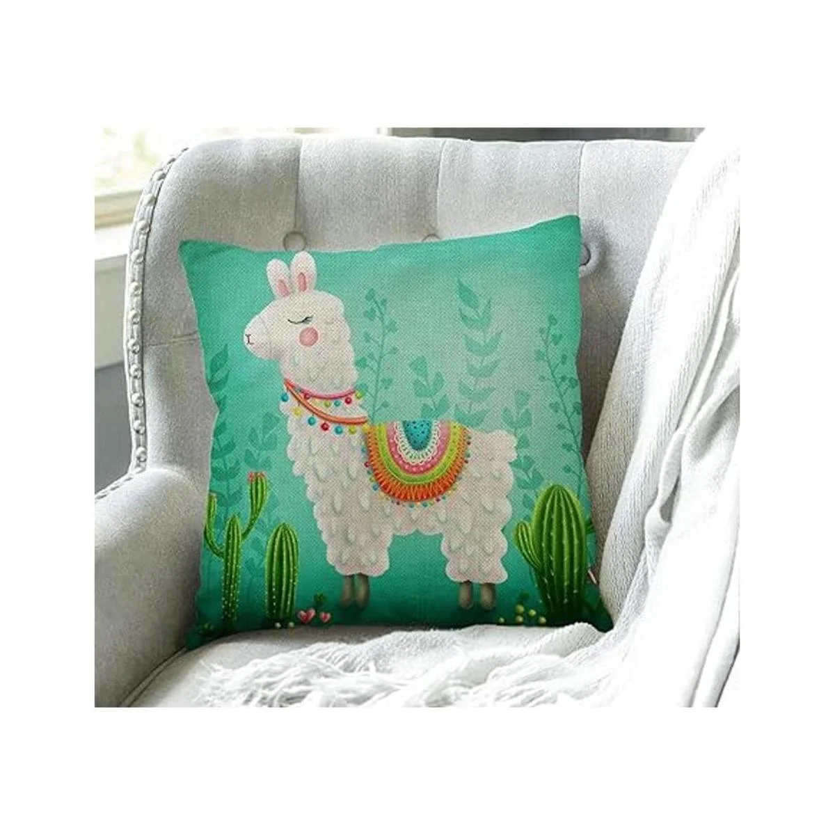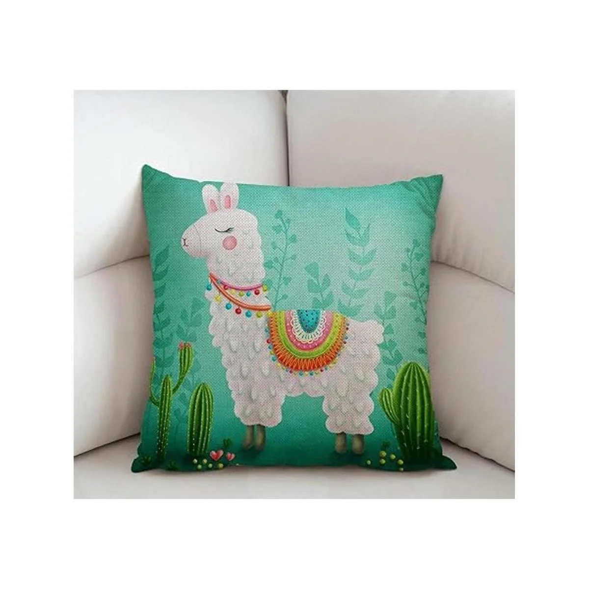 Linda funda de almohada de cactus de llama