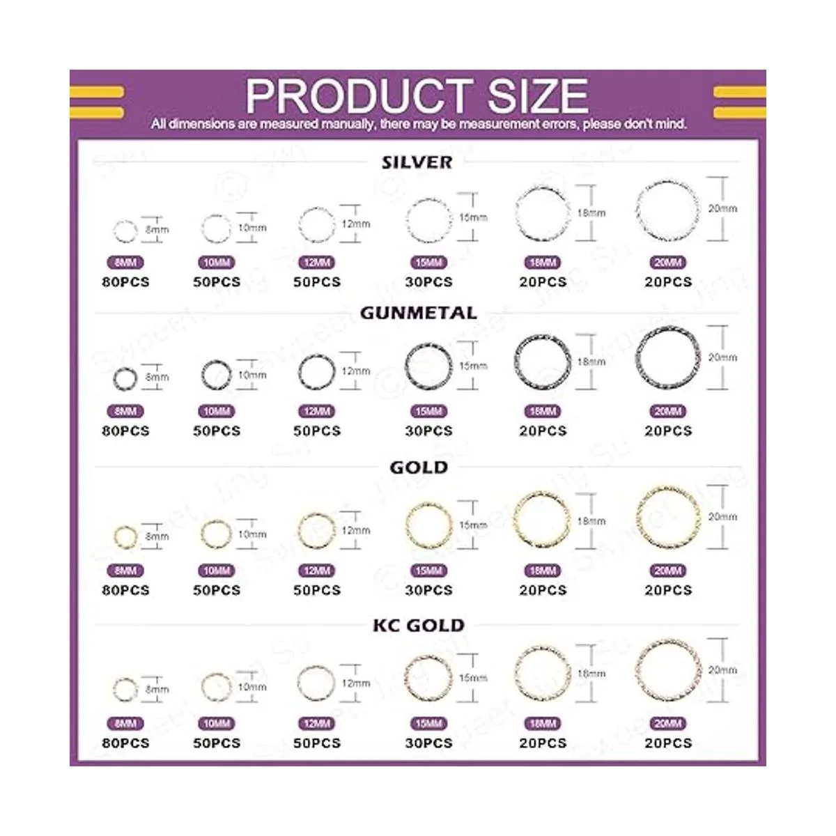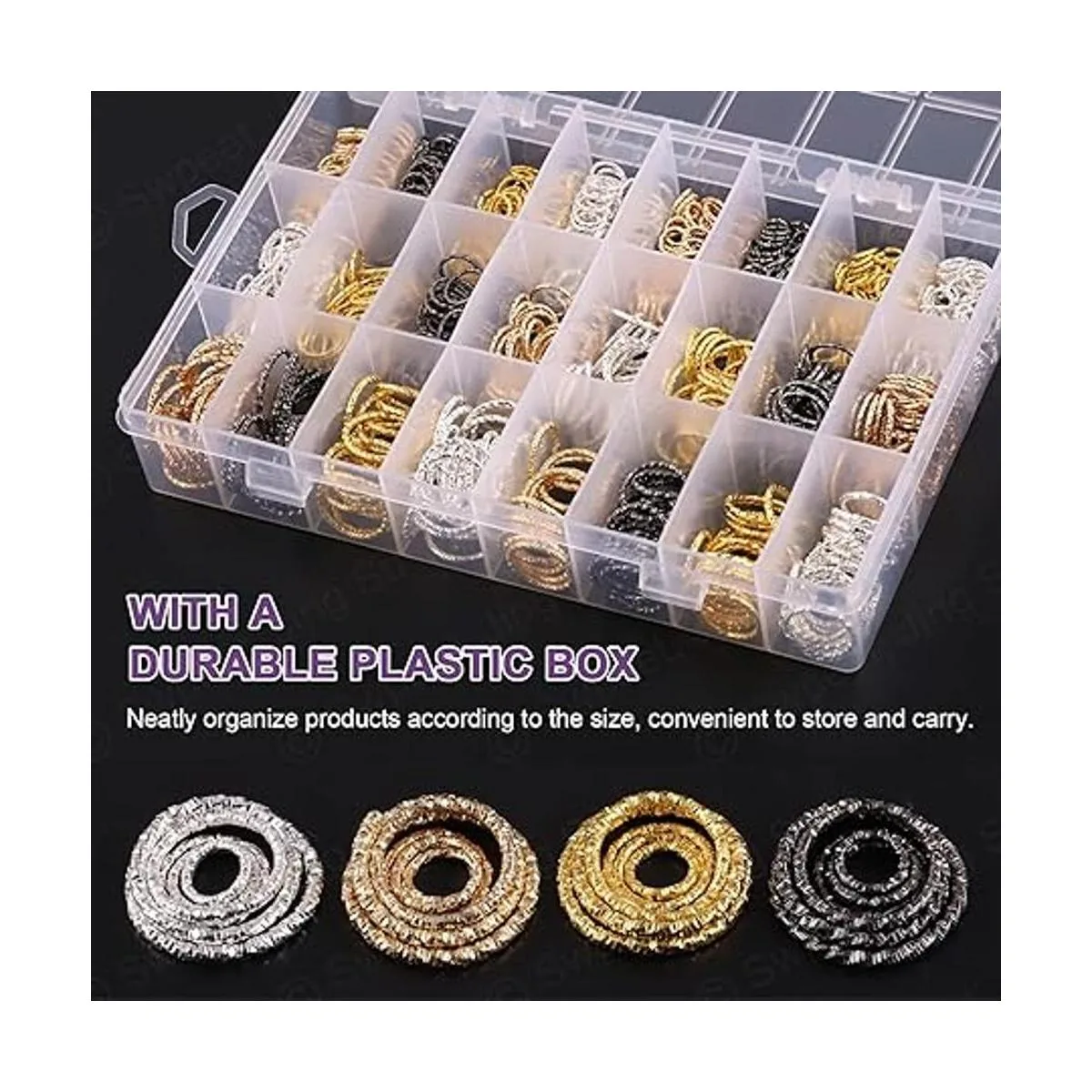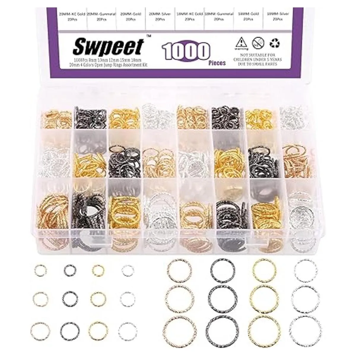 Swpeet 1000 piezas de 4 colores, 6 tamaños, 8101215180.787 in, kit de anillos abiertos trenzados para fabricación de joyas, anillos O conectores, hallazgos de joyería para pendientes, pulseras, collares, colgantes, bricolaje