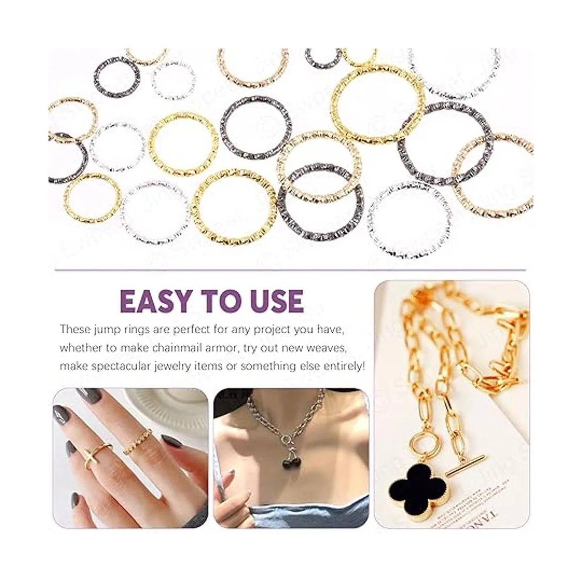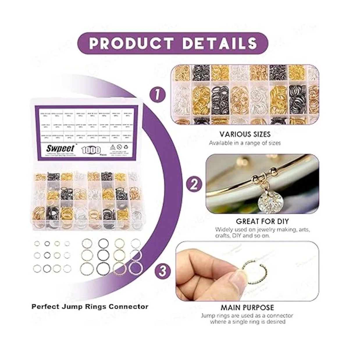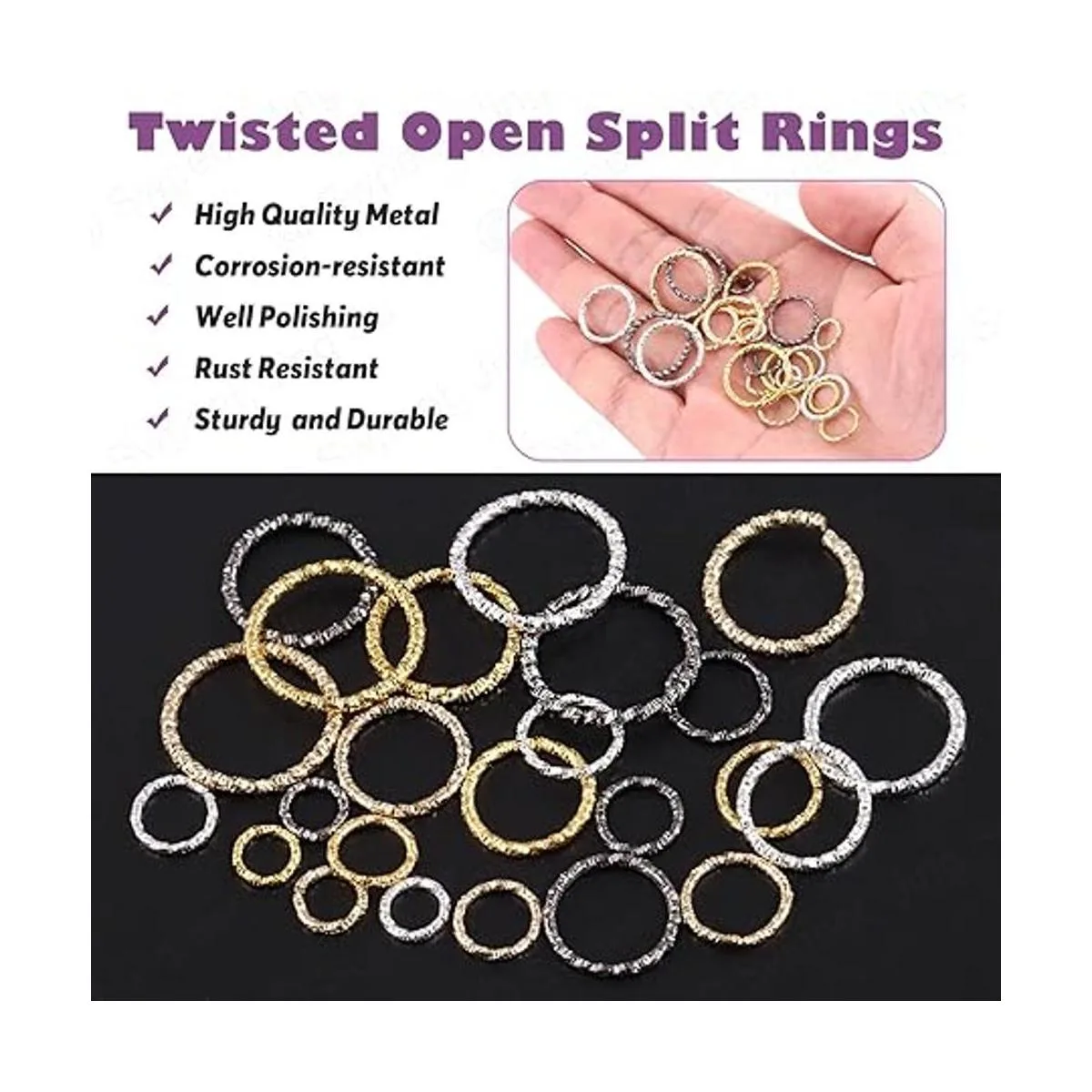Swpeet 1000 piezas de 4 colores, 6 tamaños, 8101215180.787 in, kit de anillos abiertos trenzados para fabricación de joyas, anillos O conectores, hallazgos de joyería para pendientes, pulseras, collares, colgantes, bricolaje