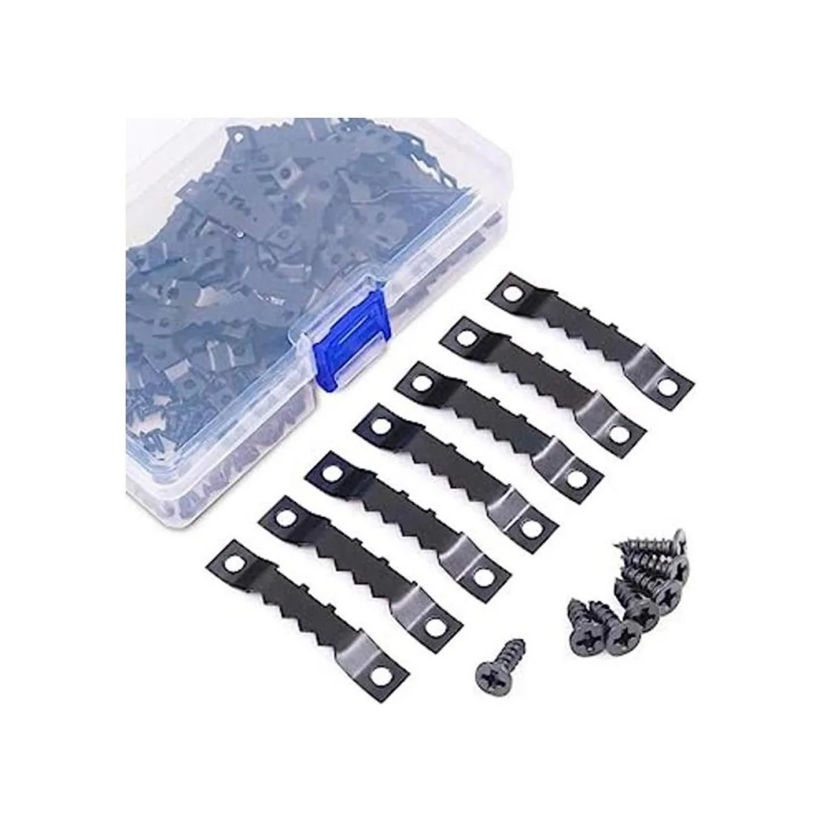 Swpeet 120 piezas de marcos de fotos con dientes de sierra, ganchos colgantes de doble agujero con tornillos, para decoración del hogar, marco de fotos creativo negro