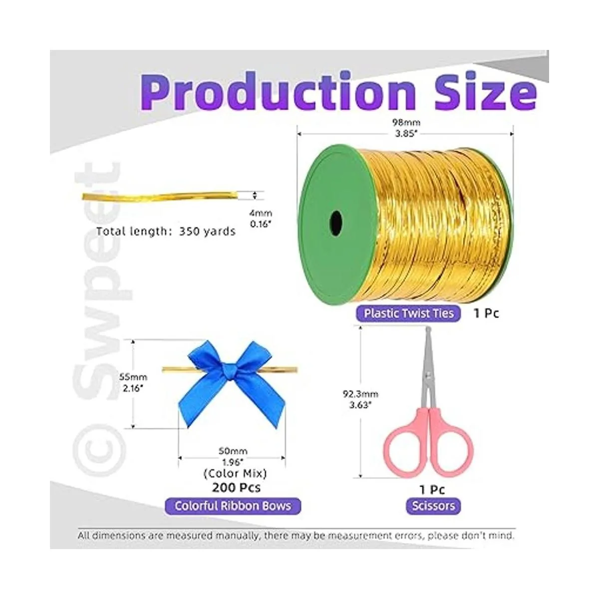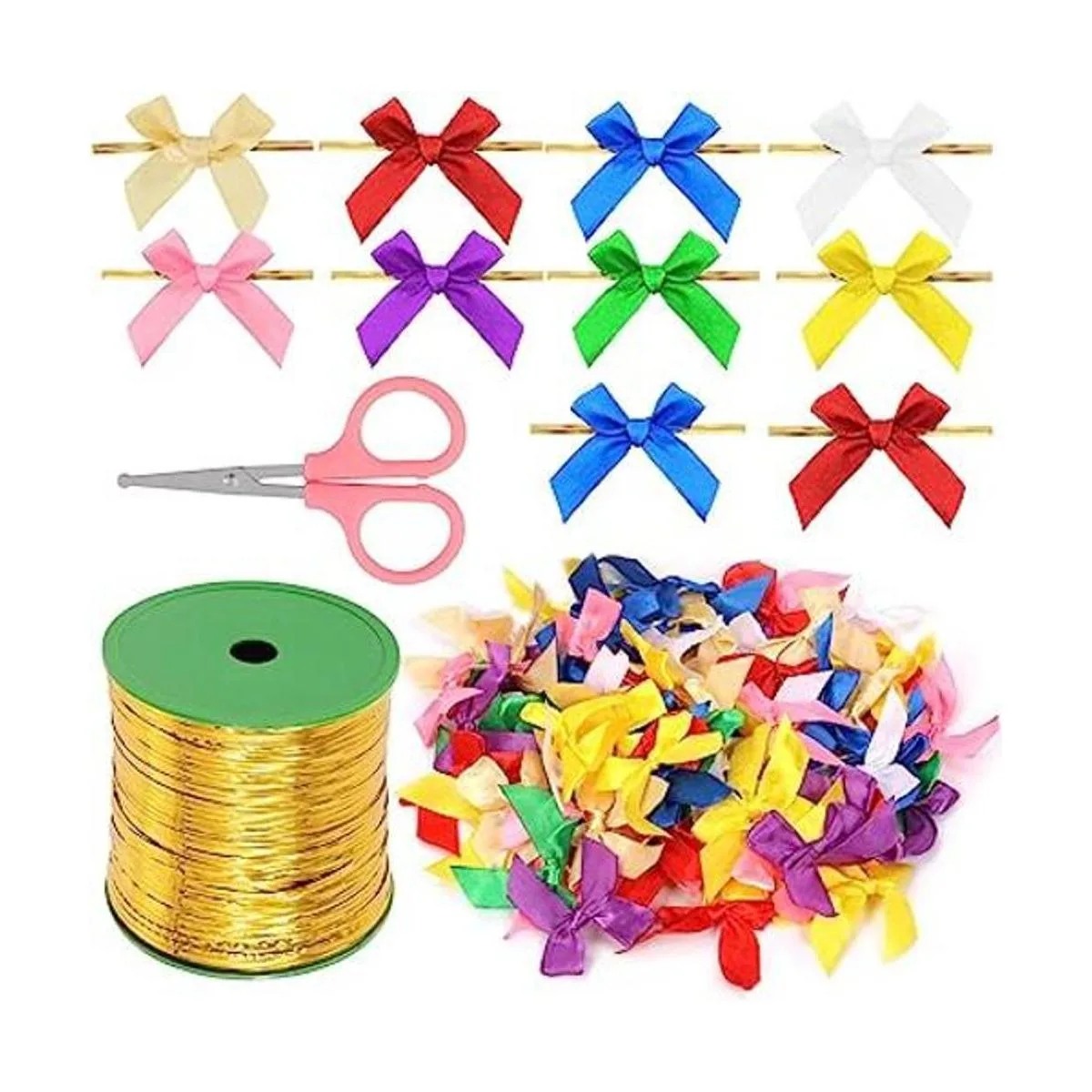 Lo que obtienes: en este kit, recibirás 202 lazos de cinta de colores mixtos y lazos metálicos con kit surtido de tijeras, incluyendo 200 lazos de corbata mezclados; 1 lazos metálicos dorados de 350 yardas; 1 tijera. En total, 202 piezas pueden satisfacer todas tus necesidades.