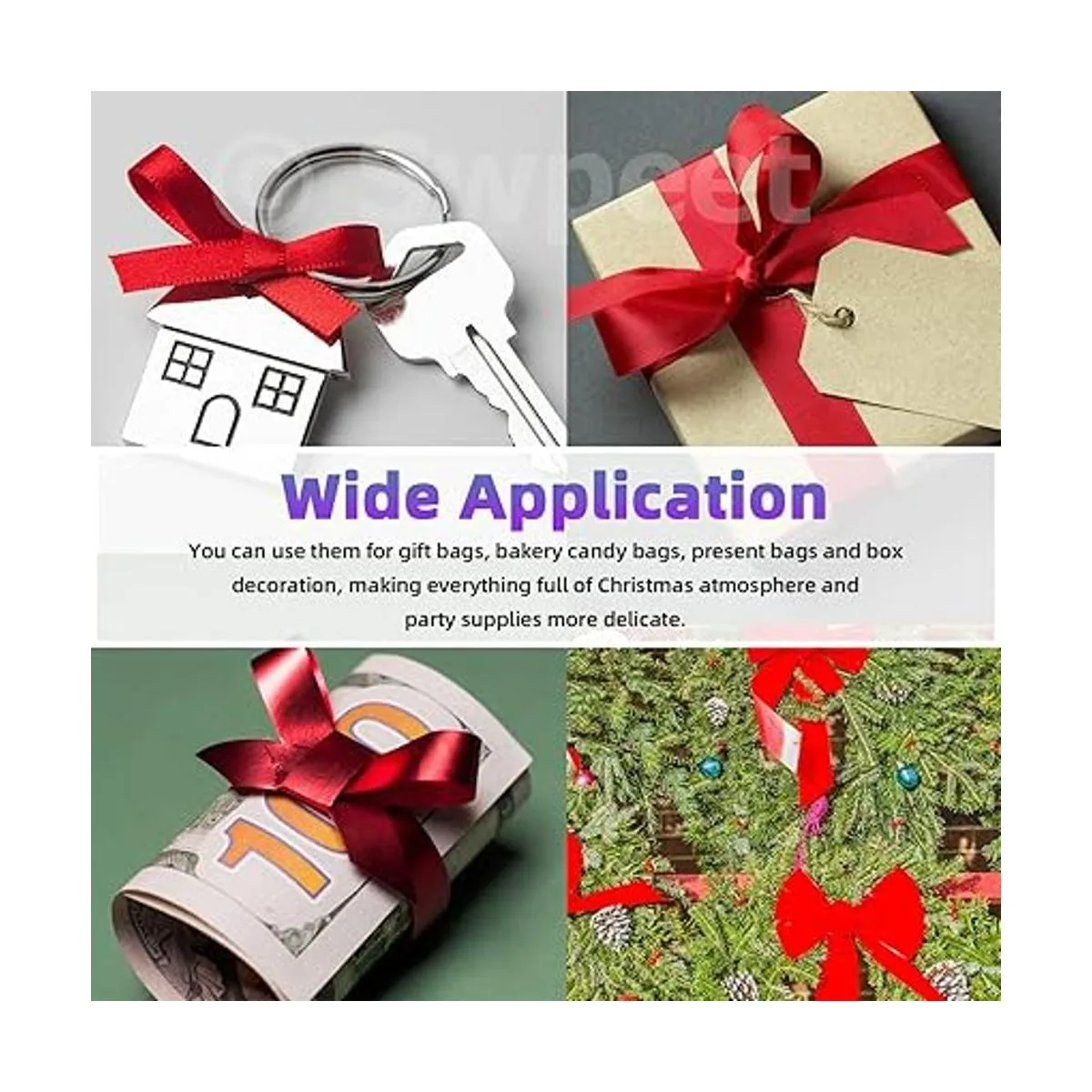 Material de calidad: estos hermosos lazos de Navidad están hechos de seda de poliéster, con mano de obra fina, colores brillantes e impresión de patrón claro, no se decolora fácilmente. Complemento perfecto para manualidades, fácil de añadir y gran tamaño para pequeñas manualidades. Son adorables y perfectas para los adornos que haces Bonita manera de añadir un poco de algo a una decoración
