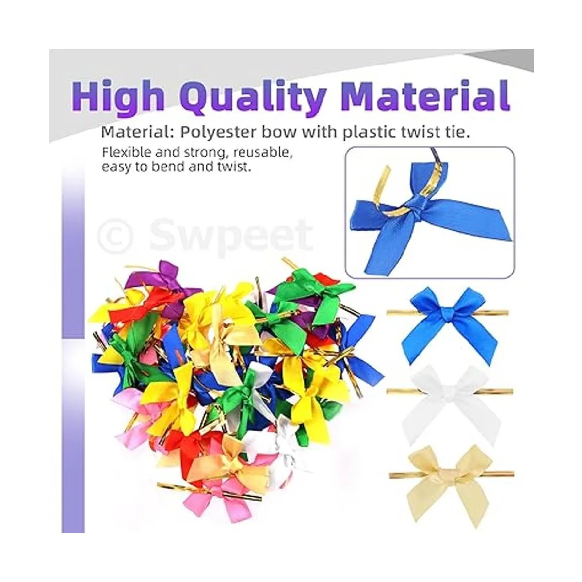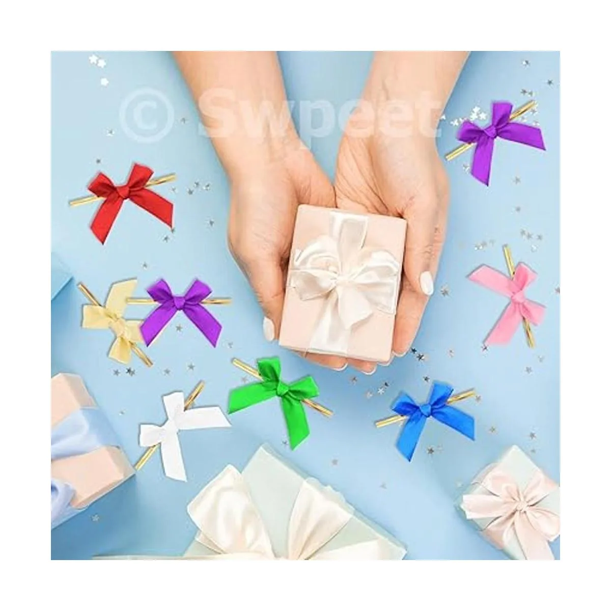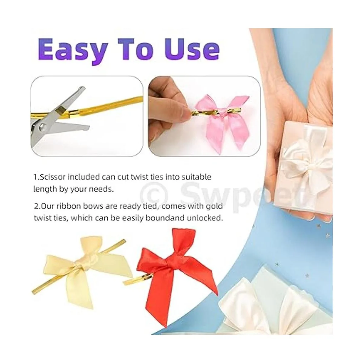 Swpeet 202 lazos de cinta torcida de colores mixtos y lazos metálicos giratorios con kit de surtido de tijeras, lazos pequeños, lazos de poliéster para decoración de envoltura, boda, Navidad