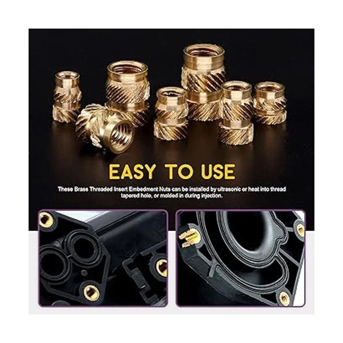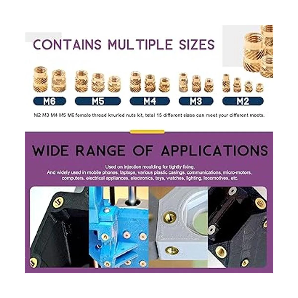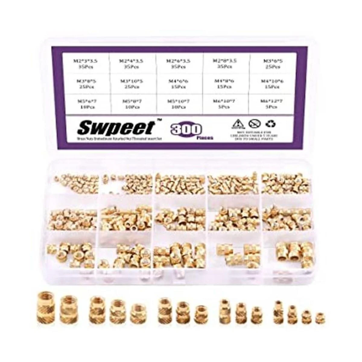 Swpeet 300 piezas de 5 valores M2 M3 M4 M5 M6 tuercas moleteadas de latón roscadas de inserción hidráulica soldada por inyección kit surtido perfecto para moldeo por inyección de impresión 3D