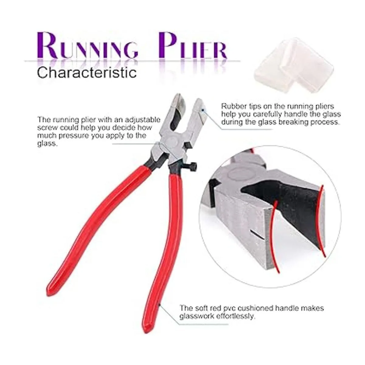 Alicates de cristal para correr. Tamaños de las herramientas: alicates de cristal para correr: longitud: 7.9 in. Ancho de la nariz: 0.984 in. El tornillo ajustable te permite controlar la cantidad de presión aplicada, el tornillo de ajuste es fácil de ajustar y correctamente golpeado; se puede utilizar en diferentes grosores de cristal.