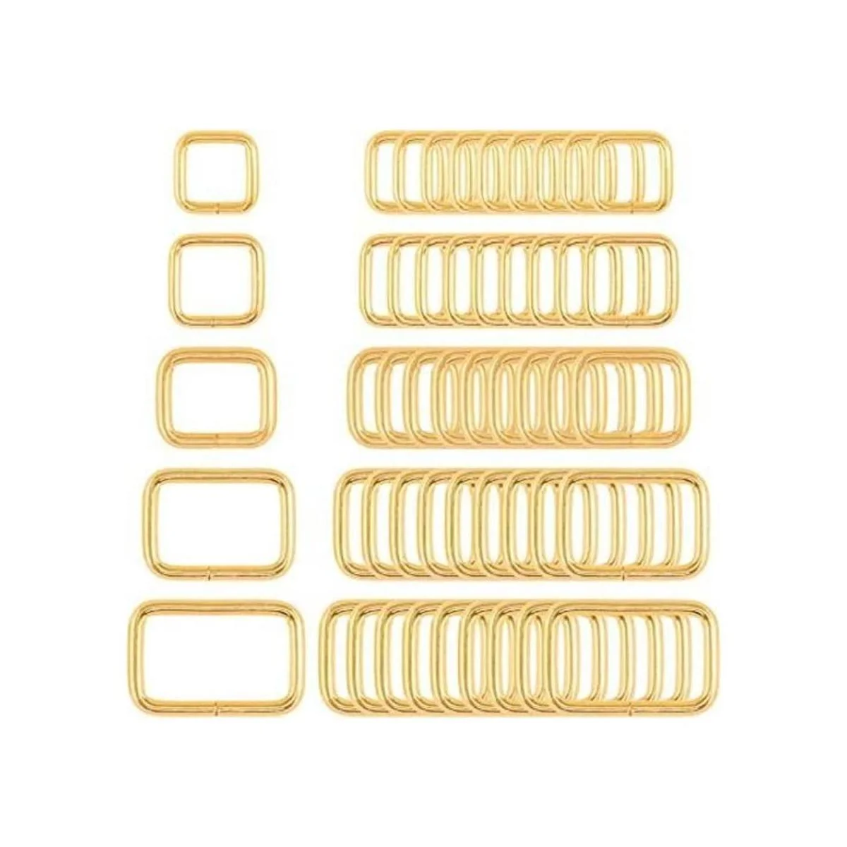 Swpeet 50 anillos rectangulares de metal dorado, cinturones de cincha, anillos de metal para bolsas de cinturón, accesorios de bricolaje, llaveros y correa de perro, 12 pulgadas, 58 pulgadas, 34 pulgadas, 1 pulgada, 54 pulgadas