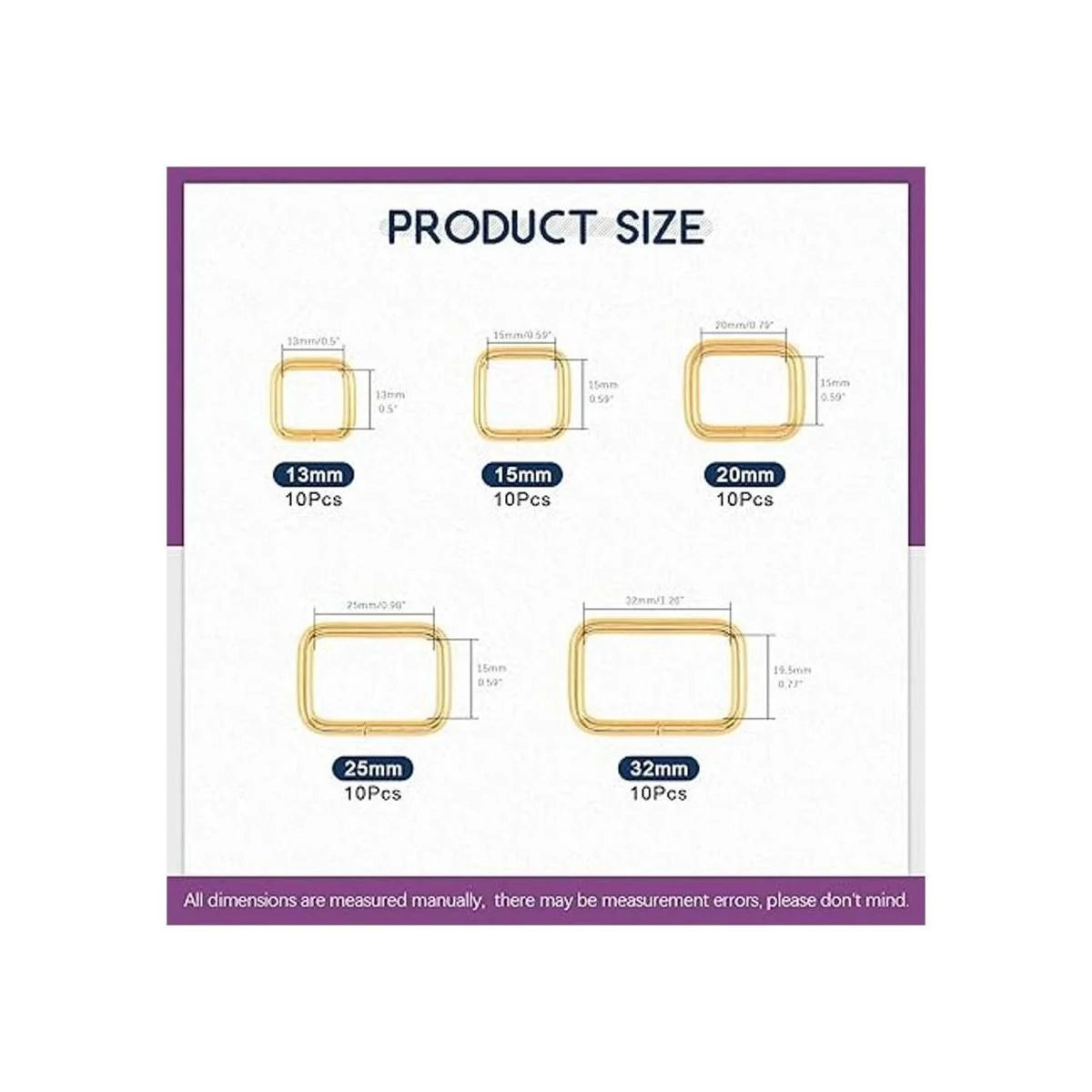 El paquete incluye 50 hebillas rectangulares, tiene 5 tamaños de modelos en un paquete, puede satisfacer todas tus necesidades. El paquete proporcionará una bolsa para resolver el problema de almacenamiento.