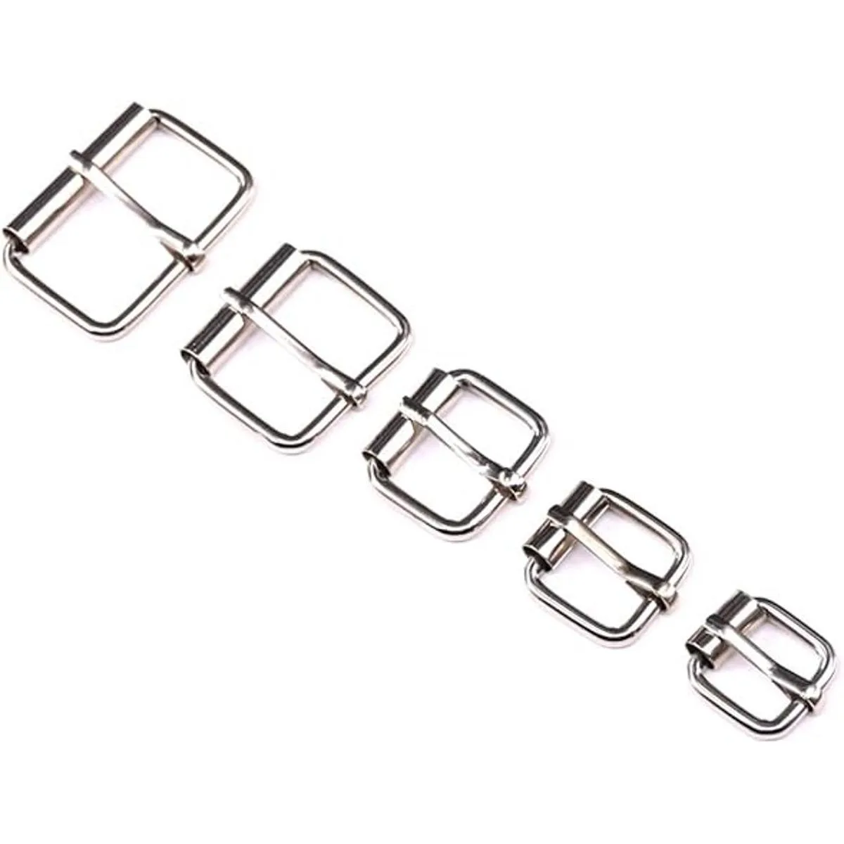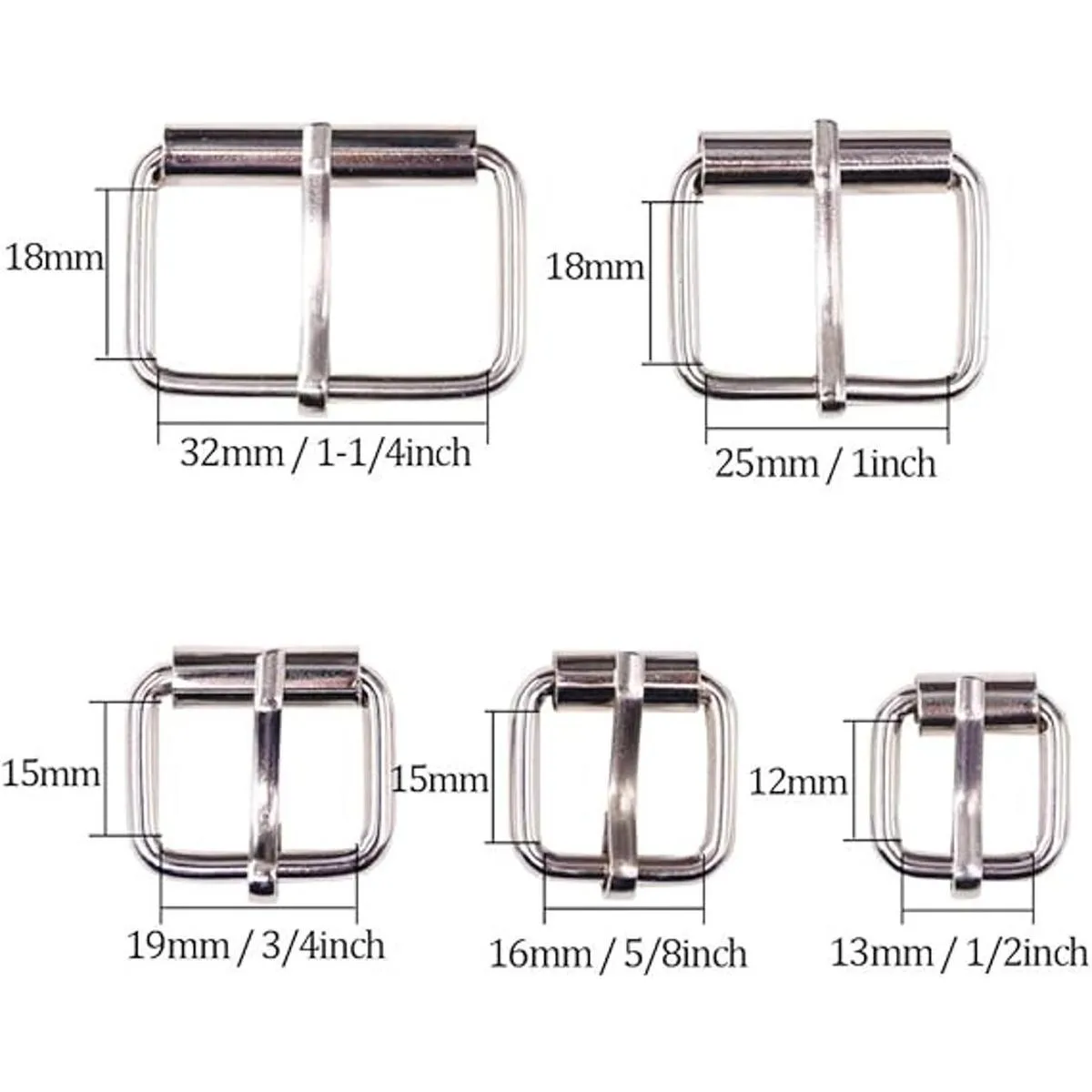 El paquete incluye 50 hebillas de rodillo plateadas, tiene 5 tamaños de modelos en un paquete, puede satisfacer todas tus necesidades. El paquete proporcionará una bolsa para resolver el problema de almacenamiento.
