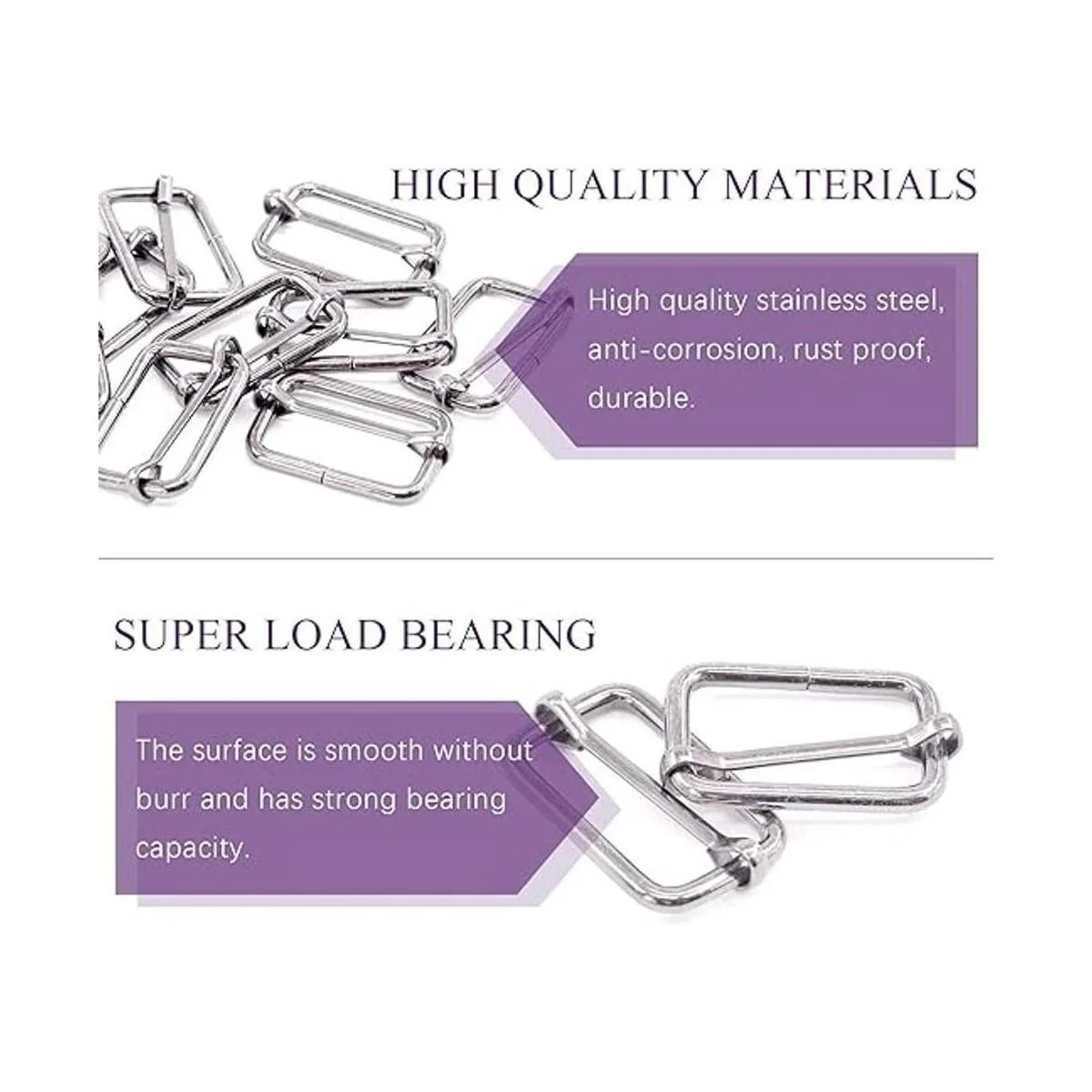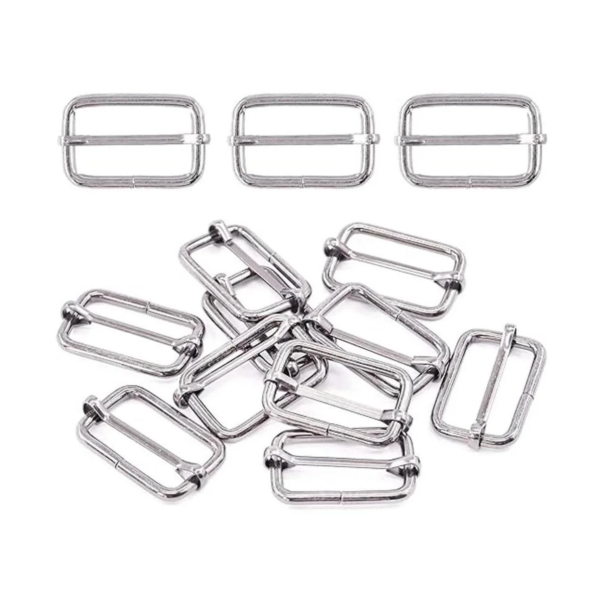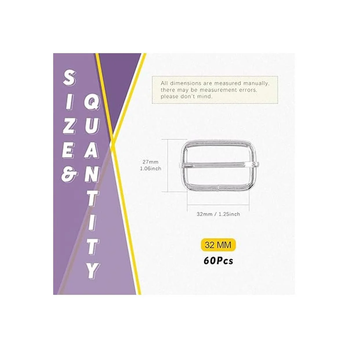 Swpeet 60 anillos de metal plateado de 54 pulgadas a 1.260 in, ajustable, rectángulo, hebilla deslizante, hebilla de rodillo deslizante, correa ajustable, llaveros para bolsas de cinturón, accesorios de bricolaje plateado, 54 pulgadas