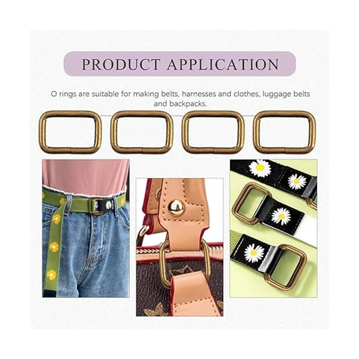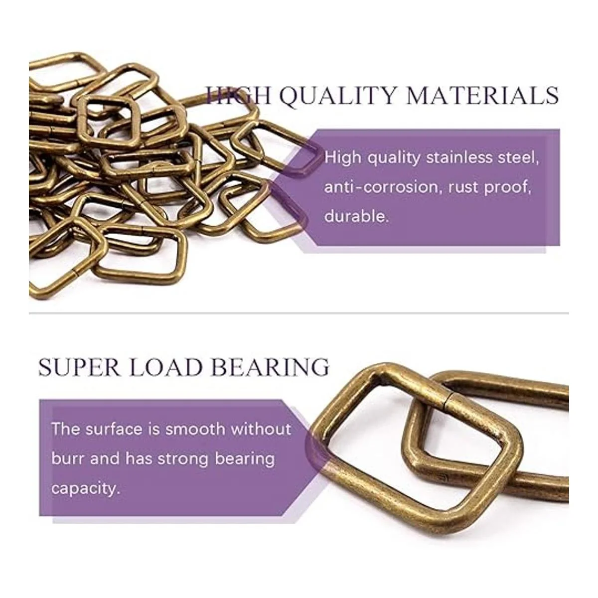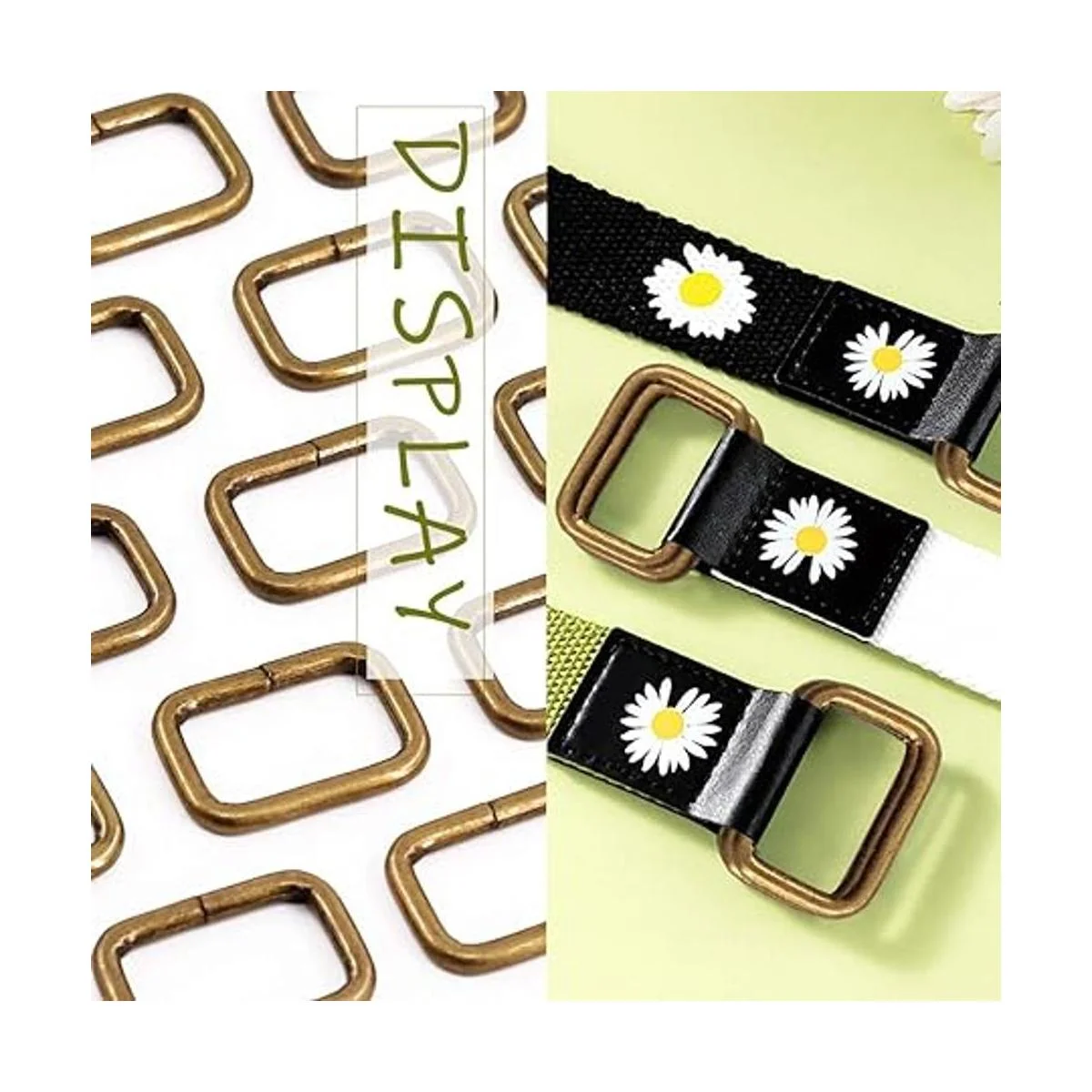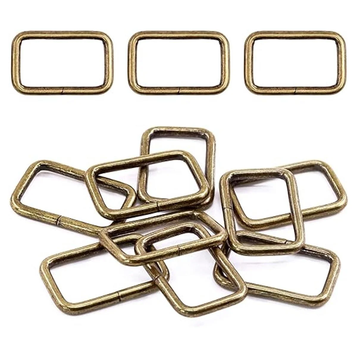 Swpeet 60 piezas 54 pulgadas 1.260 in bronce anillo rectangular de metal, correas de hebilla anillos de metal para bolsas de cinturón, accesorios de bricolaje llaveros cinturones y correa de perro bronce, 54 pulgadas