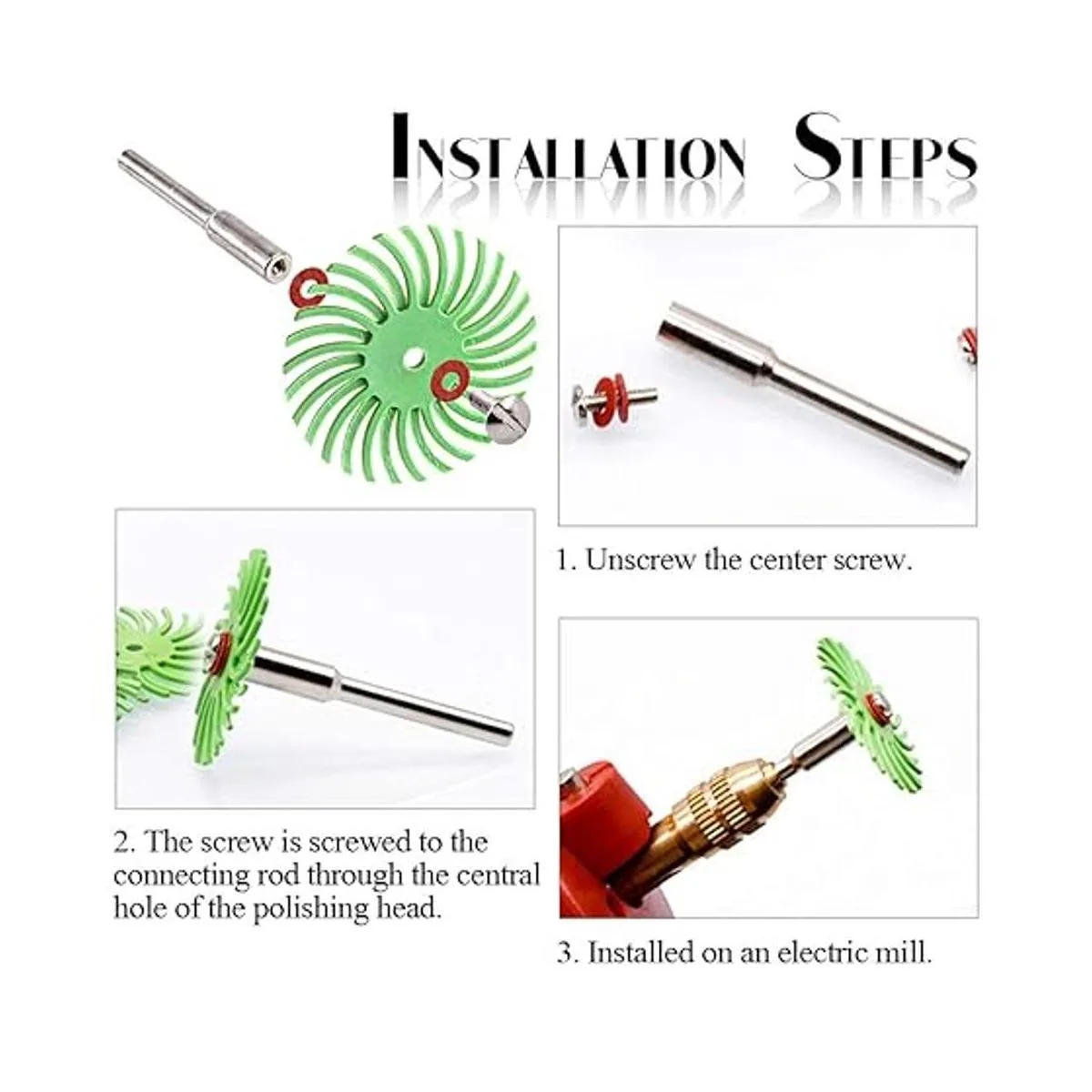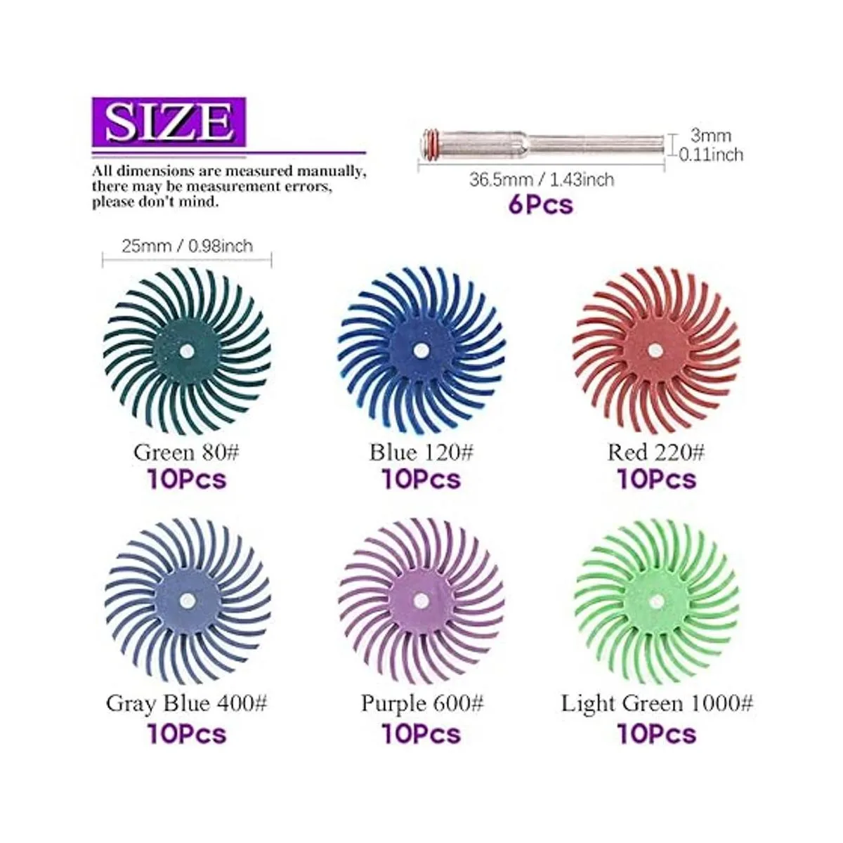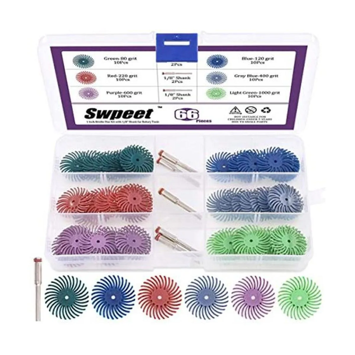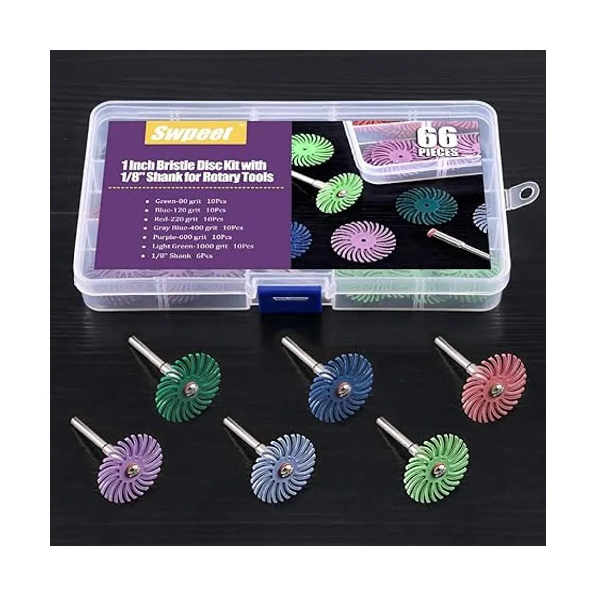 Swpeet 66 unidades de grano mixto 801202204006001000 disco de cerdas radiales, cepillo abrasivo, almohadilla de pulido de huecos, kit de surtido de ruedas de pulido con vástago de 18 pulgadas para herramientas rotativas, limpieza y desbarbado