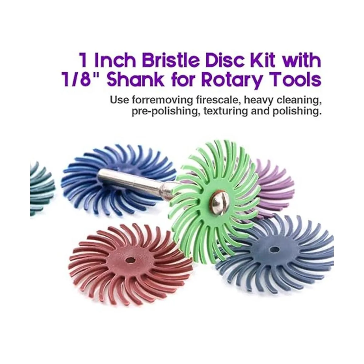 Multiusos y multifunción: el cepillo de cerdas radiales es una idea para metalurgia, preparación de pintura, revestimiento y eliminación de corrosión y funciona bien en aluminio, latón, bronce, acero al carbono, hierro fundido, acero inoxidable y otros metales. Nuestros discos de pulido de detalles son adecuados para desbarbar, limpiar, acabar, mecanizar y pulir piezas detalladas, áreas pequeñas y lugares irregulares.