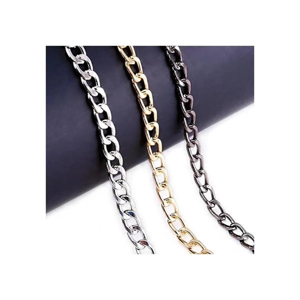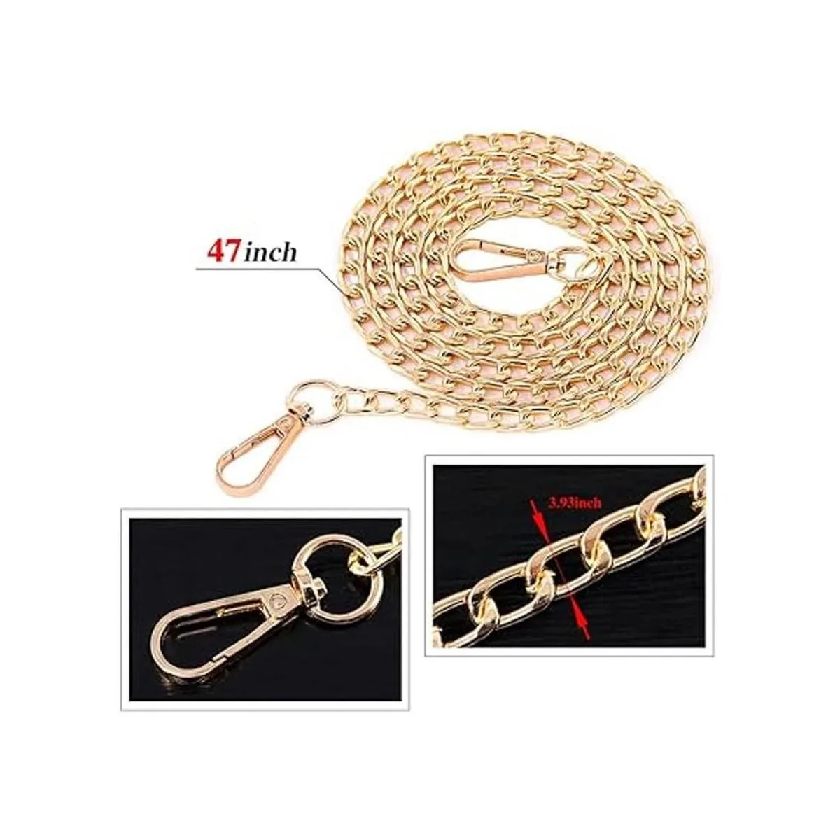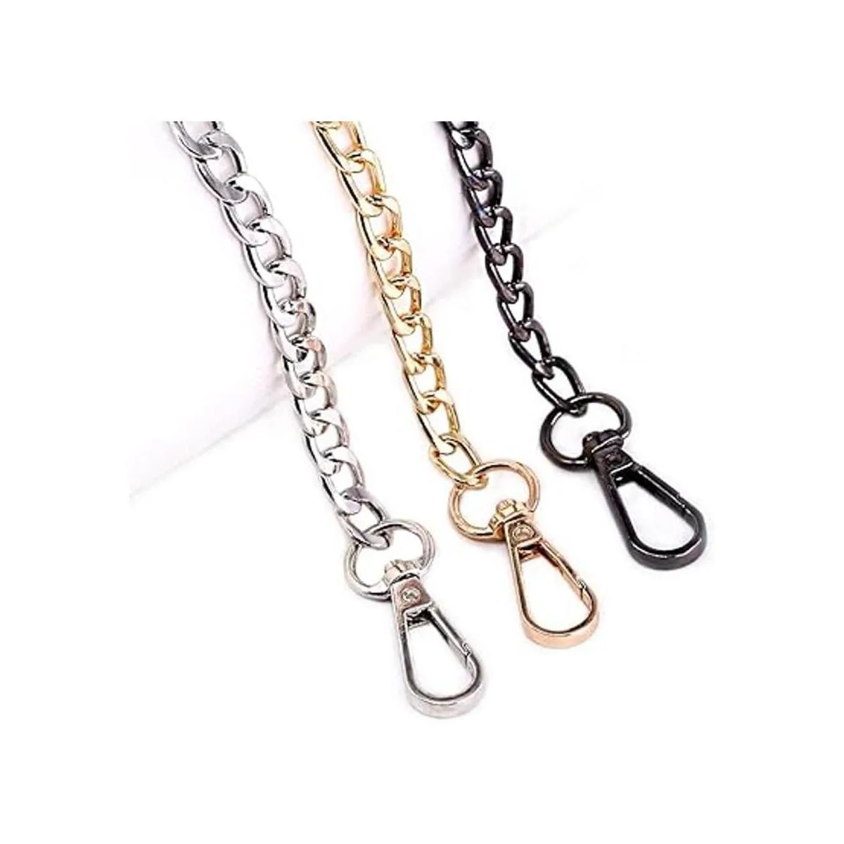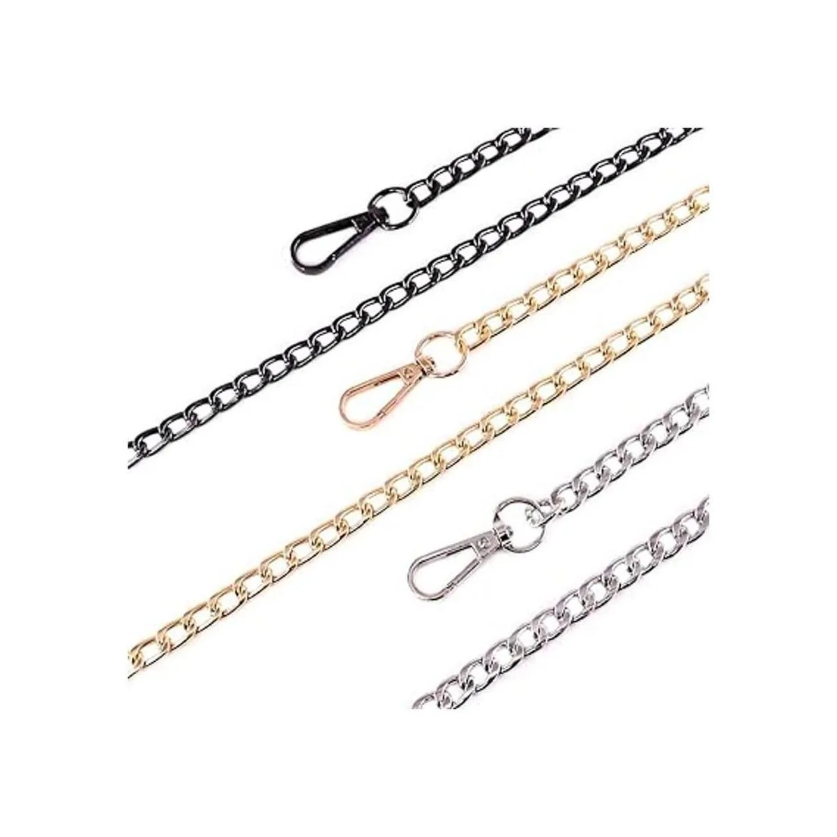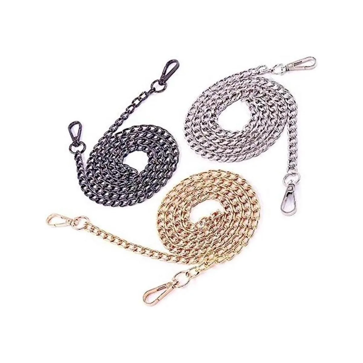 Swpeet Juego de 3 correas de cadena plana de repuesto de 47 pulgadas con hebillas, perfectas para bricolaje de hombro de metal, bolsa de mano de repuesto oro plata , Cadena plana.