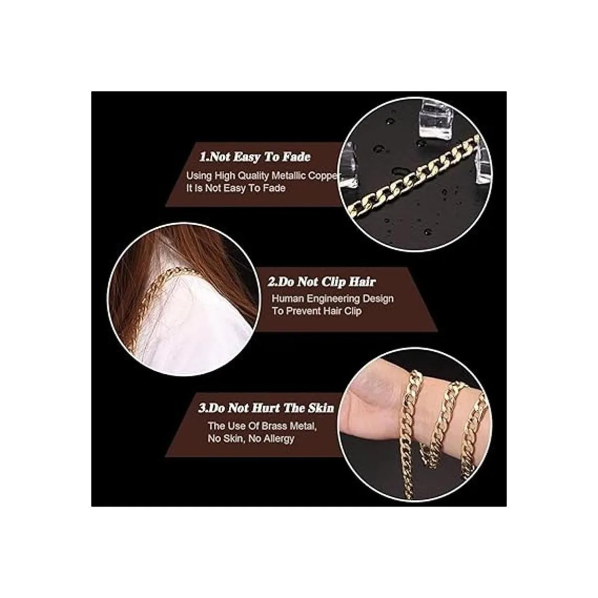 3. Material avanzado: la cadena está hecha de materiales del mismo grado que los artículos de lujo. No daña el cuerpo humano, sin reacciones alérgicas, el material de metal utilizado también es muy fuerte.