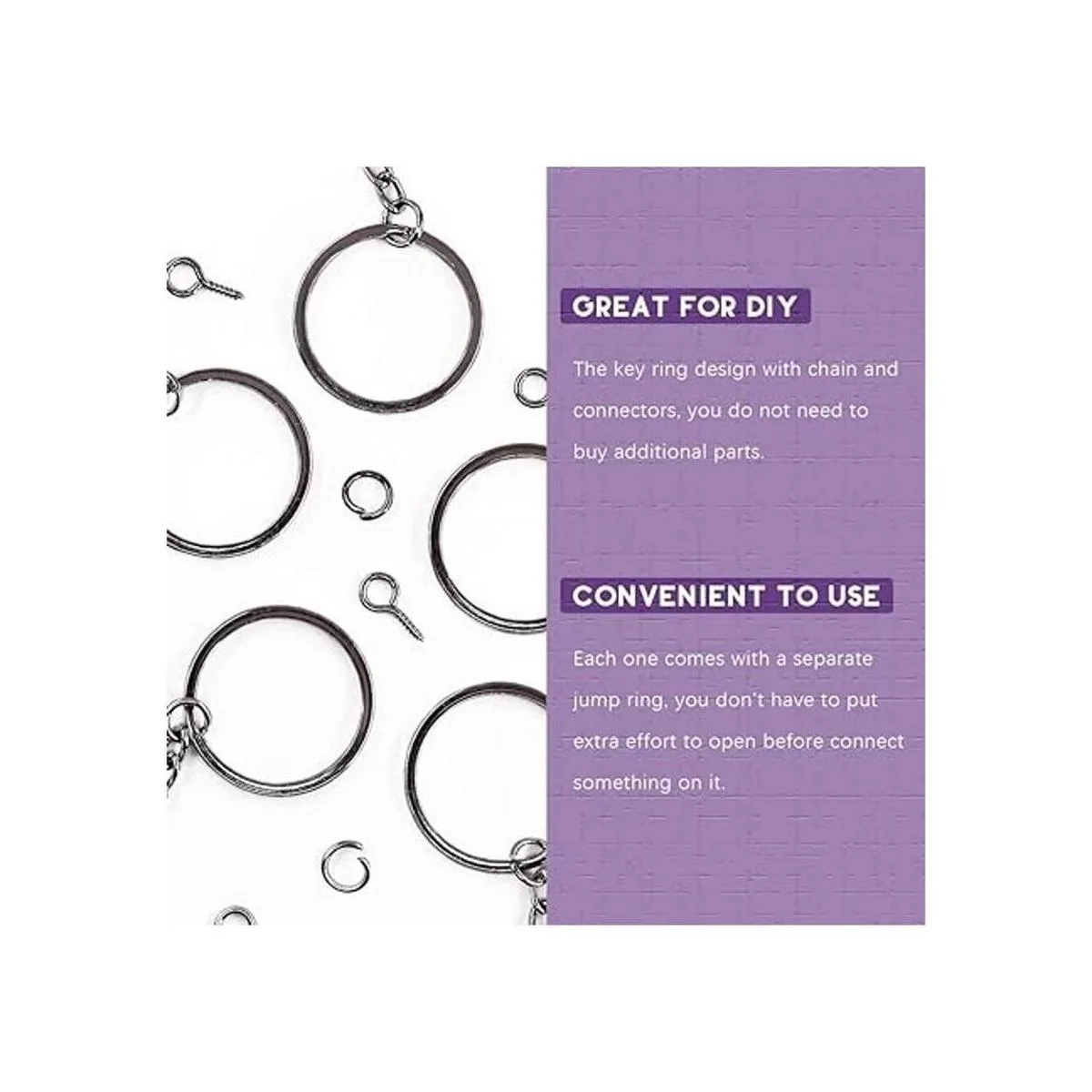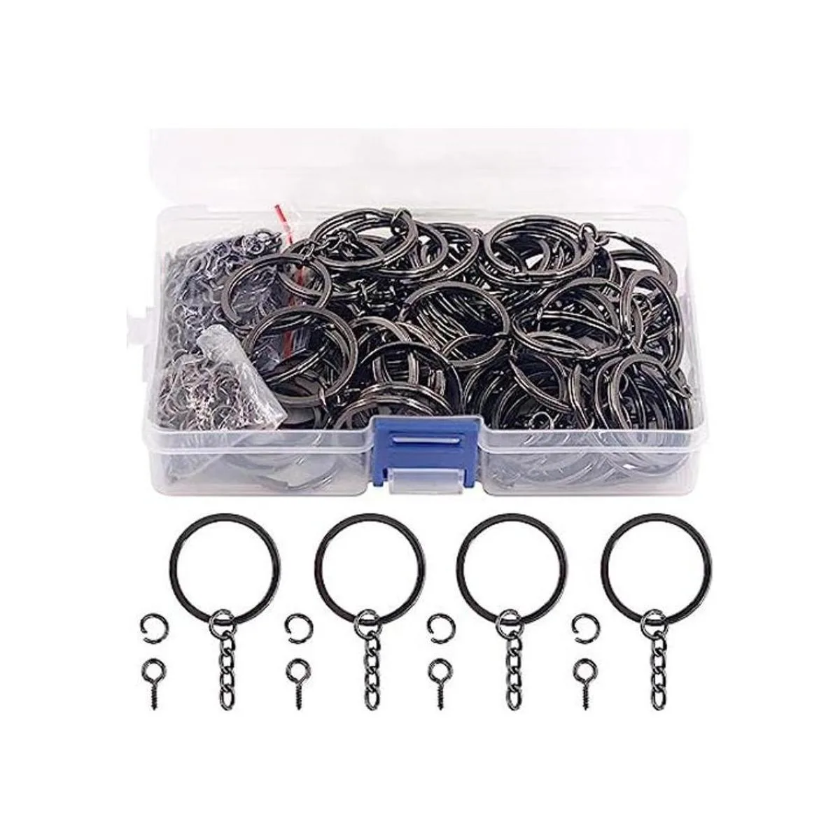 Swpeet Kit de 450 llaveros planos negros de 65 pulgadas de 1.57 pulgadas, incluye 100 anillos de llavero divididos con cadena y 100 anillos de salto con 100 pines de ojo de tornillo a granel para hacer joyas