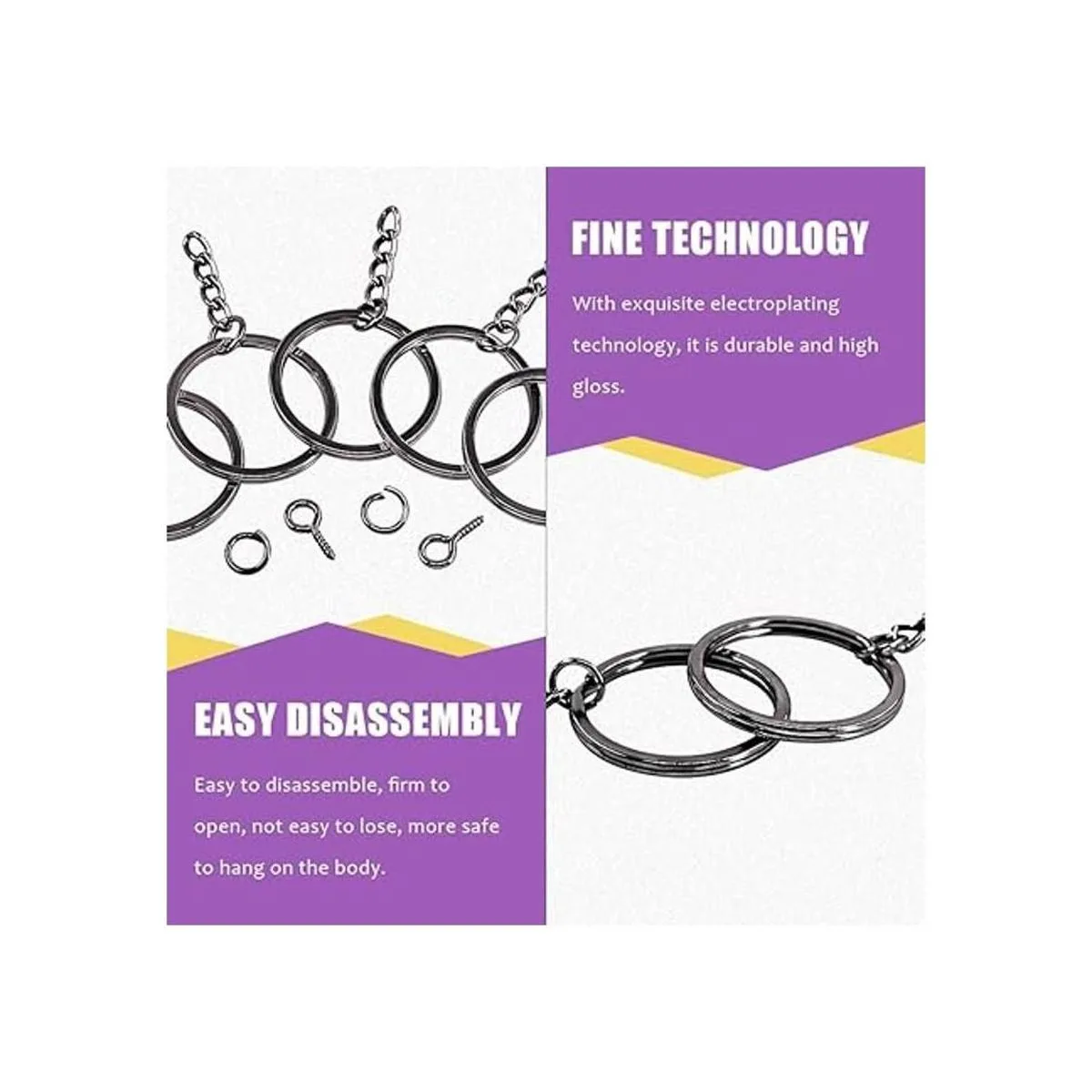 2. Detalles del tamaño: el tamaño del anillo dividido, aprox. 0.787 in de diámetro con cadena de extensión de 1 pulgada, el anillo de salto abierto es de 0.315 in de diámetro y el pasador de ojo de tornillo es de 0.394 in x 0.197 in de largo y ancho. Ideal para hacer accesorios de llavero.