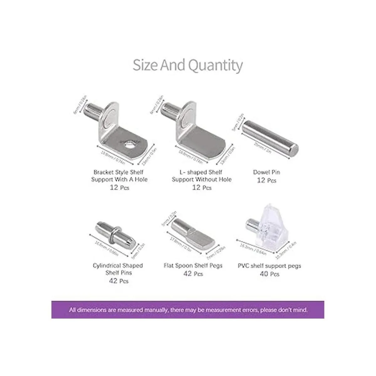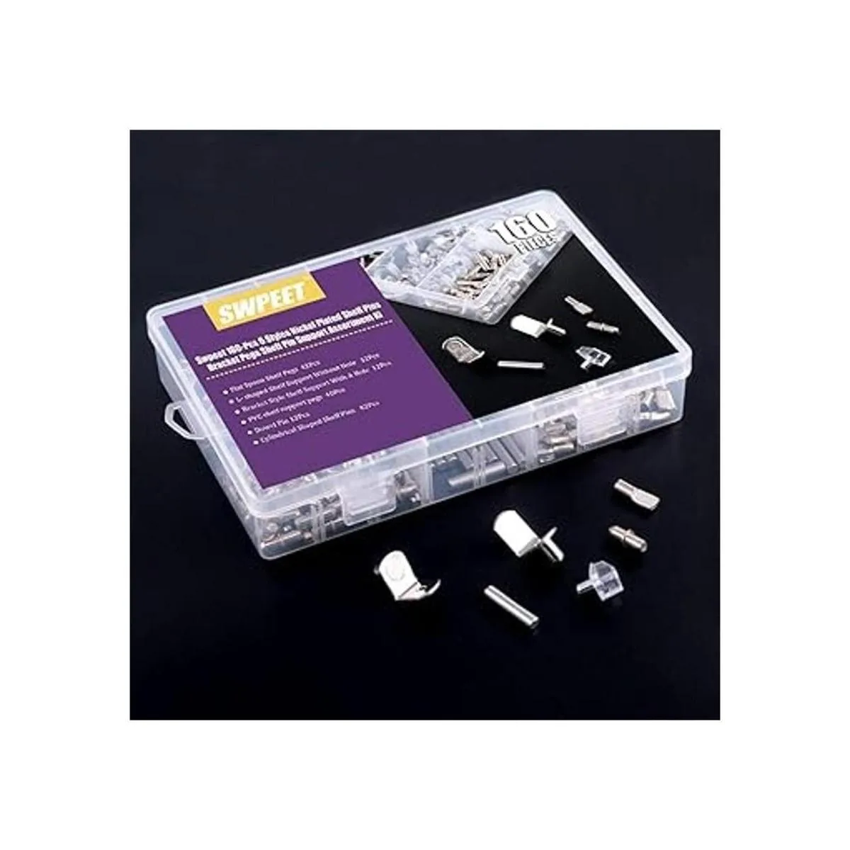 Swpeet Kit surtido de 160 piezas de 6 estilos, kit surtido de pernos de estante chapado en níquel de calidad superior para estantes de gabinete, estantes de muebles y estantes de soporte para agujeros en armarios, centros de entretenimiento