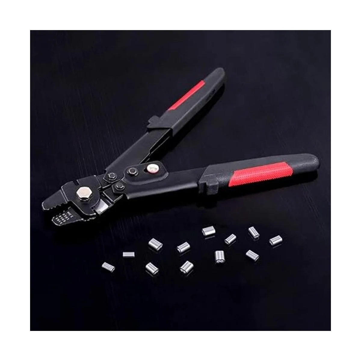 Alta calidad: la herramienta de crimpado de cuerda de alambre utiliza acero al carbono de alta calidad para soportar la dureza de la abrazadera. Después del tratamiento de oxidación negra, se forma una película de óxido densa en la superficie, por lo que no hay necesidad de preocuparse por ser corroida por el agua de mar u ocasionalmente oxidada incorrectamente.