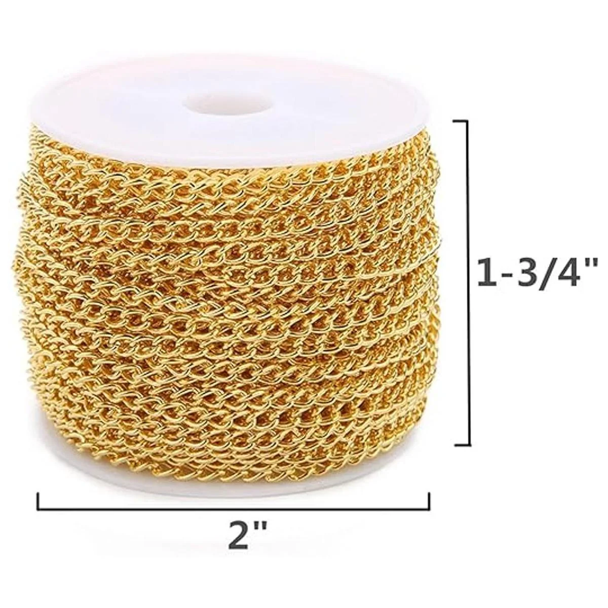 SWTOOL Cadenas de eslabones dorados de metal de 60 pies20 yardas, cadena de eslabones de hierro a granel para hacer joyas de bricolaje, 2 rollos x 10 yardas dorado