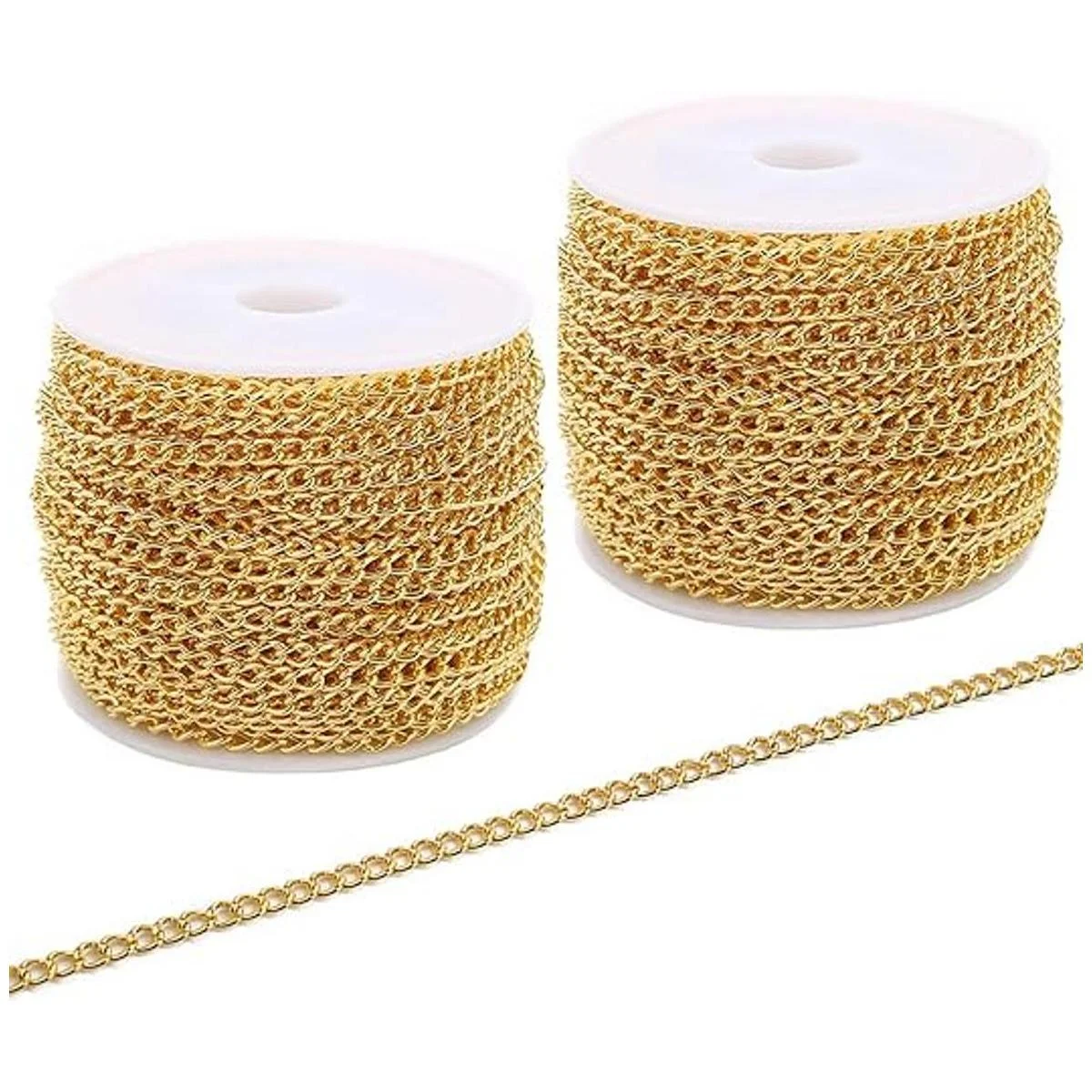 SWTOOL Cadenas de eslabones dorados de metal de 60 pies/20 yardas, cadena de eslabones de hierro a granel para hacer joyas de bricolaje, 2 rollos x 10 yardas (dorado)