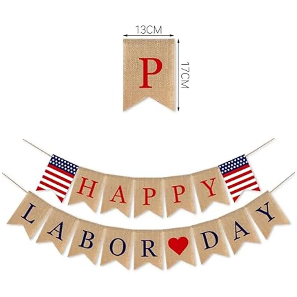 El paquete incluye: un juego con pancarta Happy Labor Day.