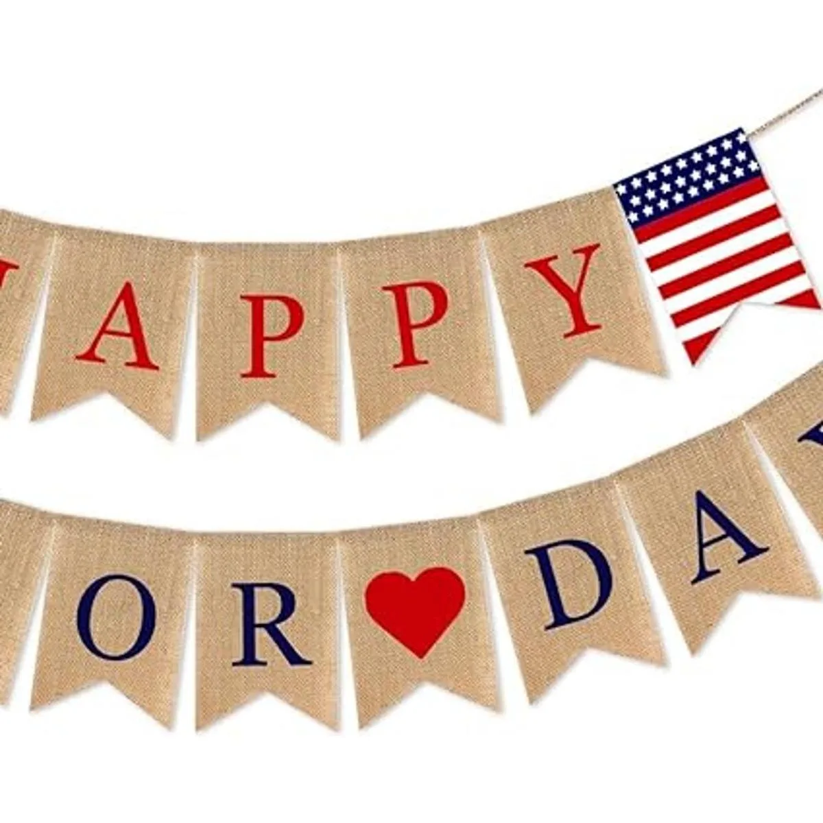 No requiere bricolaje: la guirnalda de arpillera está premontada con cuerda larga ajustable, ahorra tiempo para decorar fiestas, y el espacio de intervalo de estas arpillera se puede ajustar como quieras.