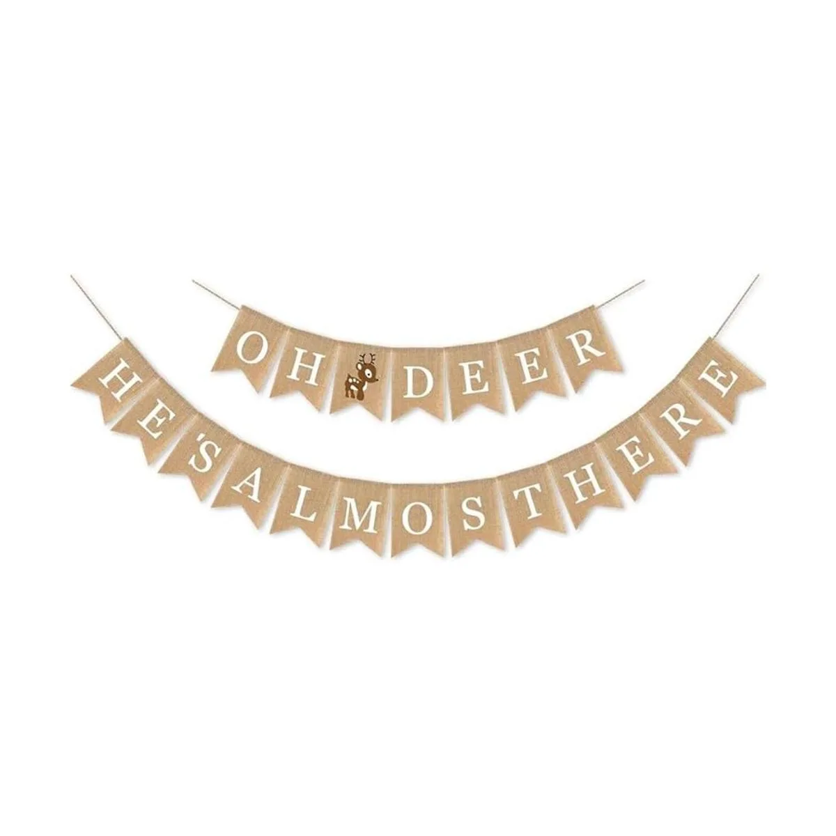 SWYOUN Arpillera Oh Deer l s Casi Aquí Banner Mantel Chimenea Suministros Niño Woodland Baby Shower Guirnalda Decoraciones