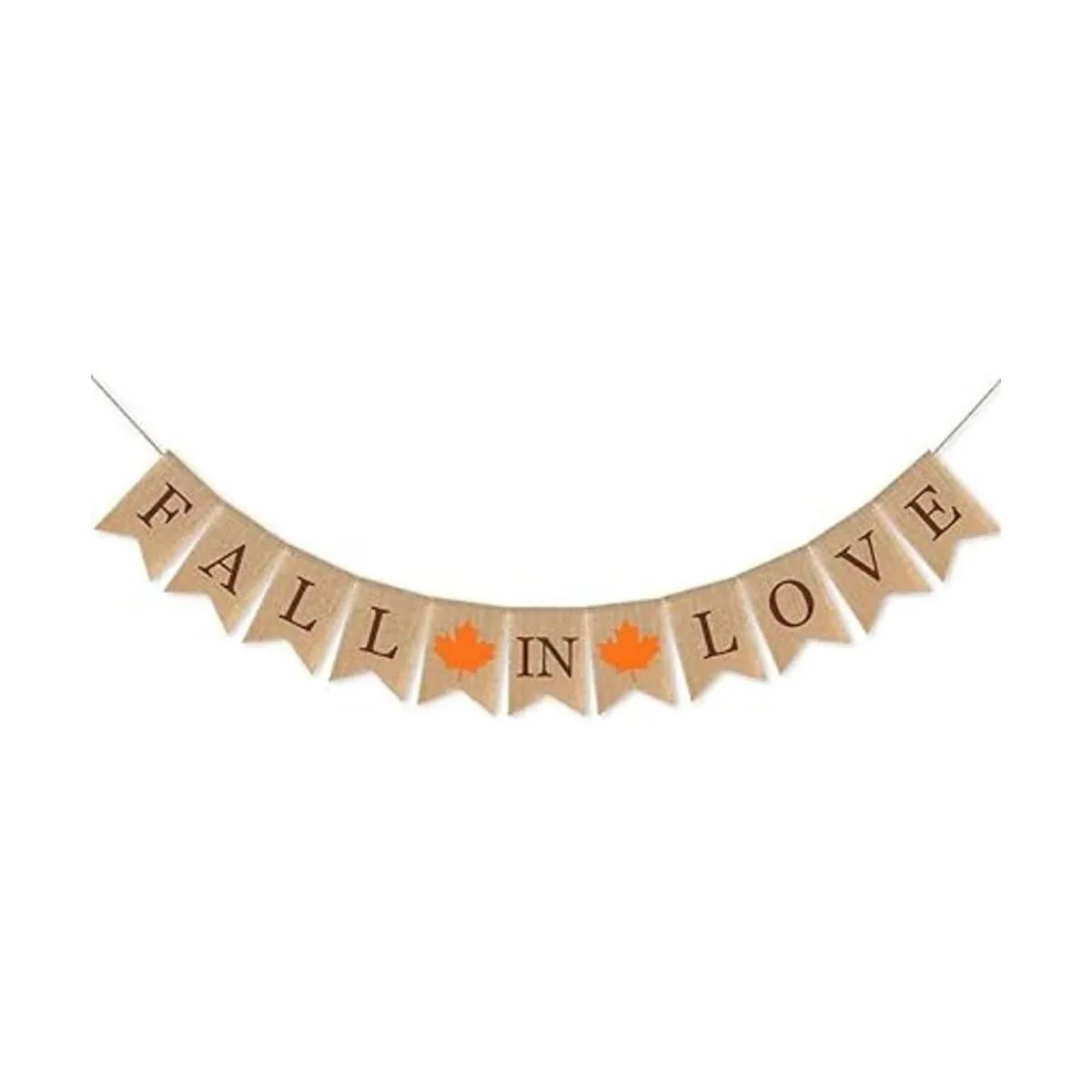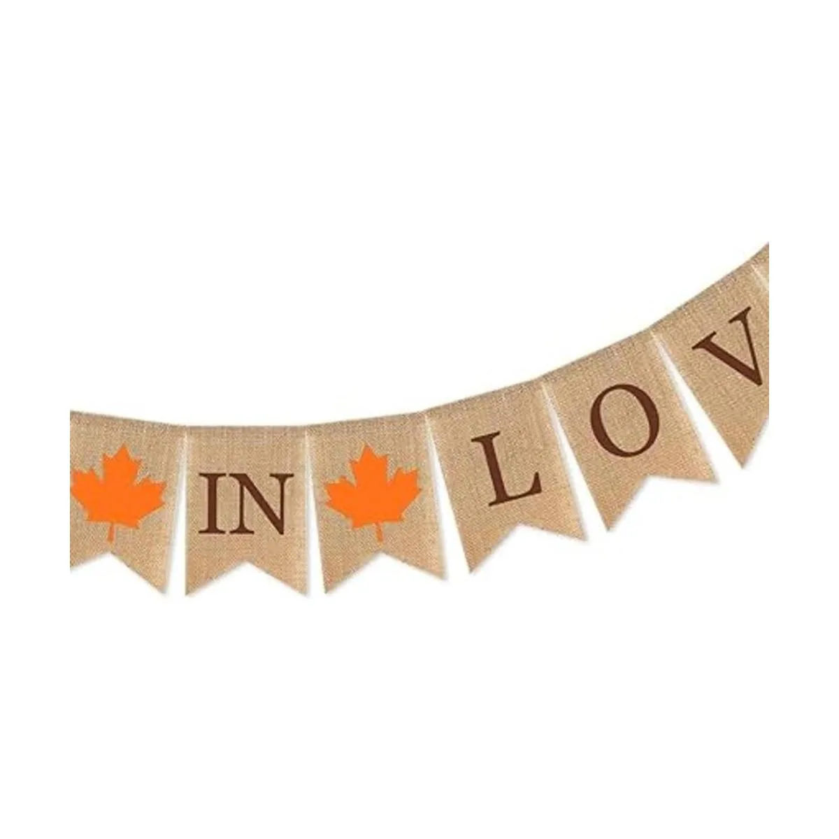 SWYOUN Bandera de arpillera con letrero de hoja de arce para otoño o boda, suministros de compromiso, decoración de despedida de soltera