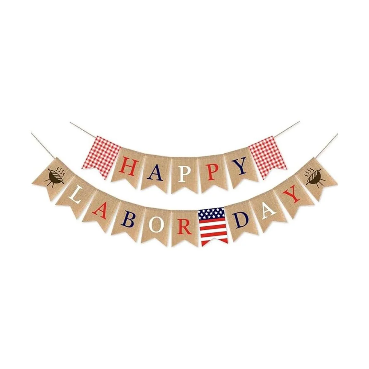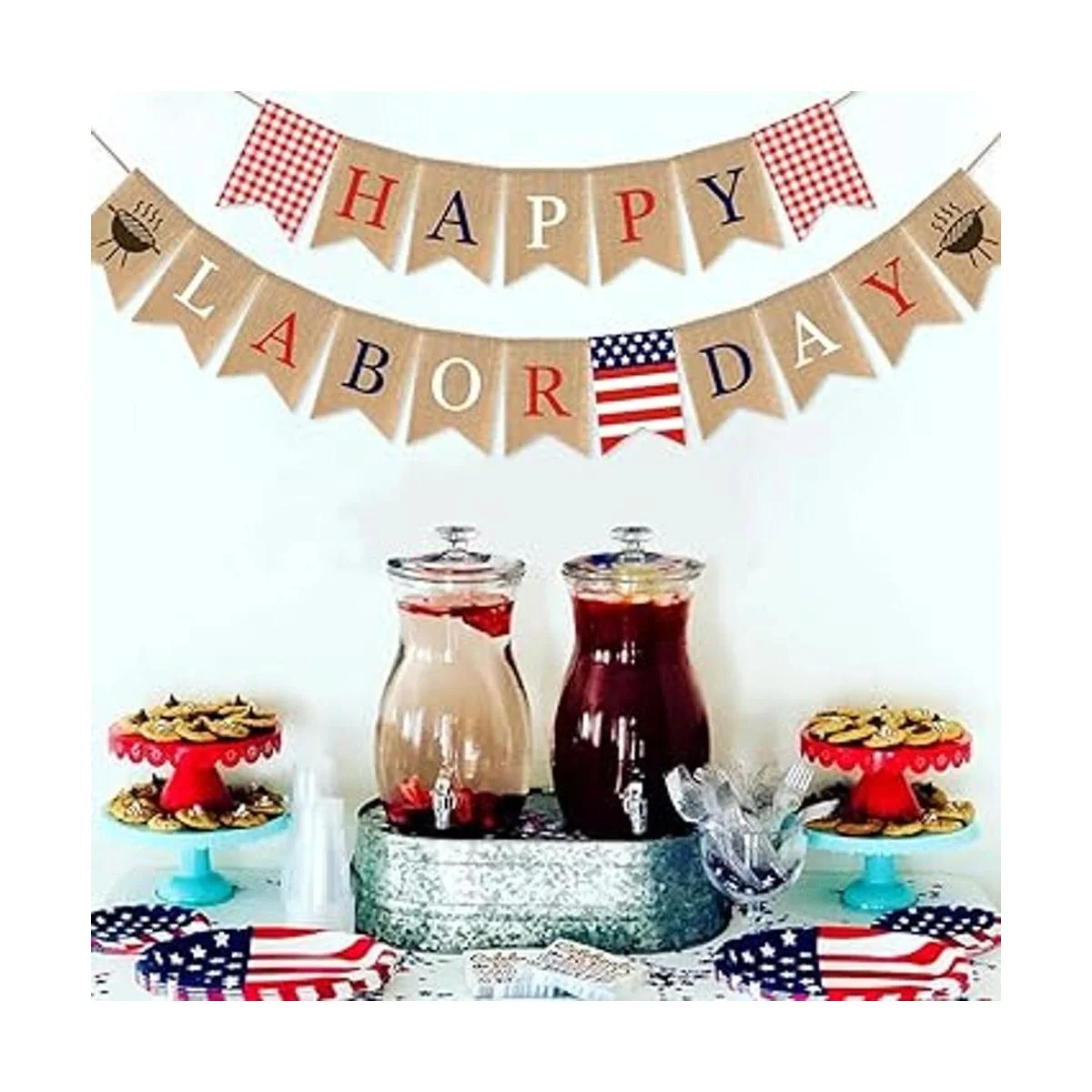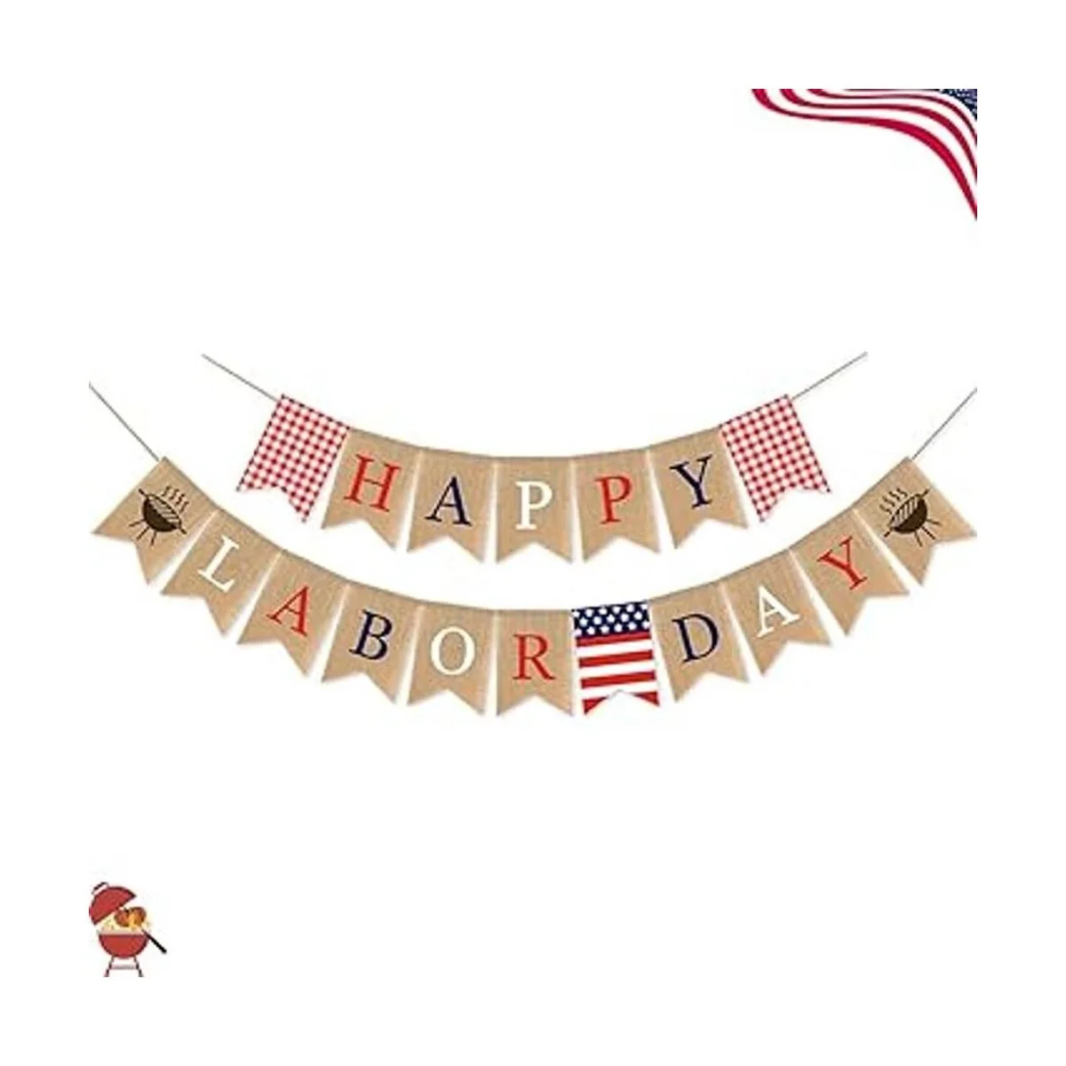 El paquete incluye: un juego con el texto en inglés Happy Labor Day con pancarta temática de barbacoa.