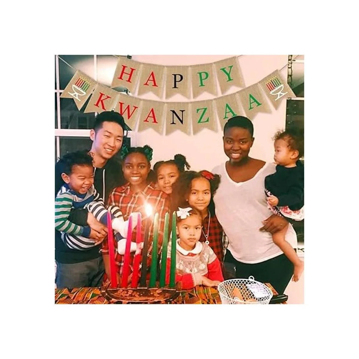 El paquete incluye: un juego con la pancarta Happy Kwanzaa.