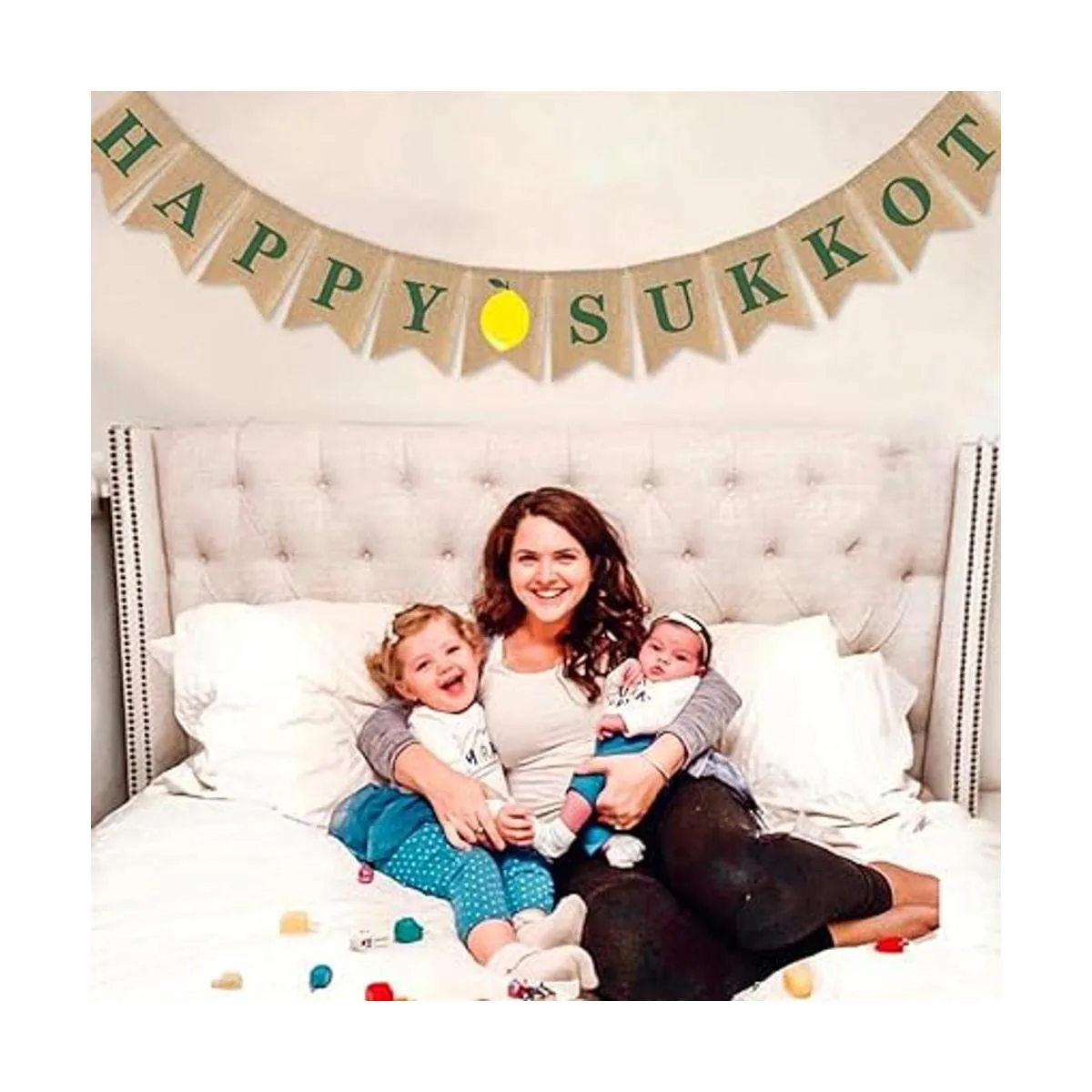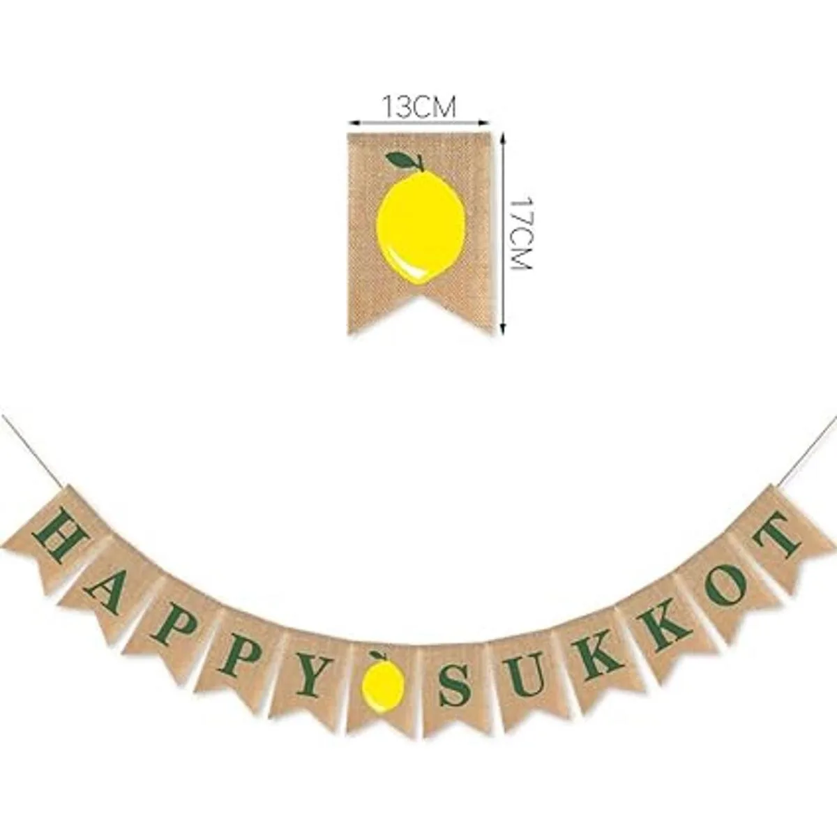 El paquete incluye: un juego con la pancarta Happy Sukkot.