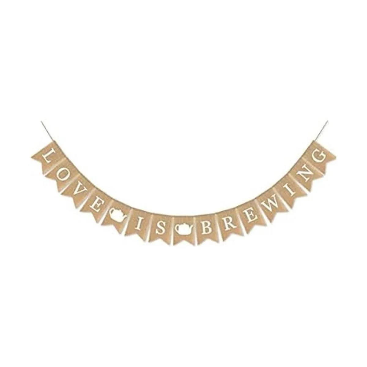 SWYOUN Burlap Love is Brewing Banner té café temático bar nupcial ducha suministros boda compromiso fiesta guirnalda decoración