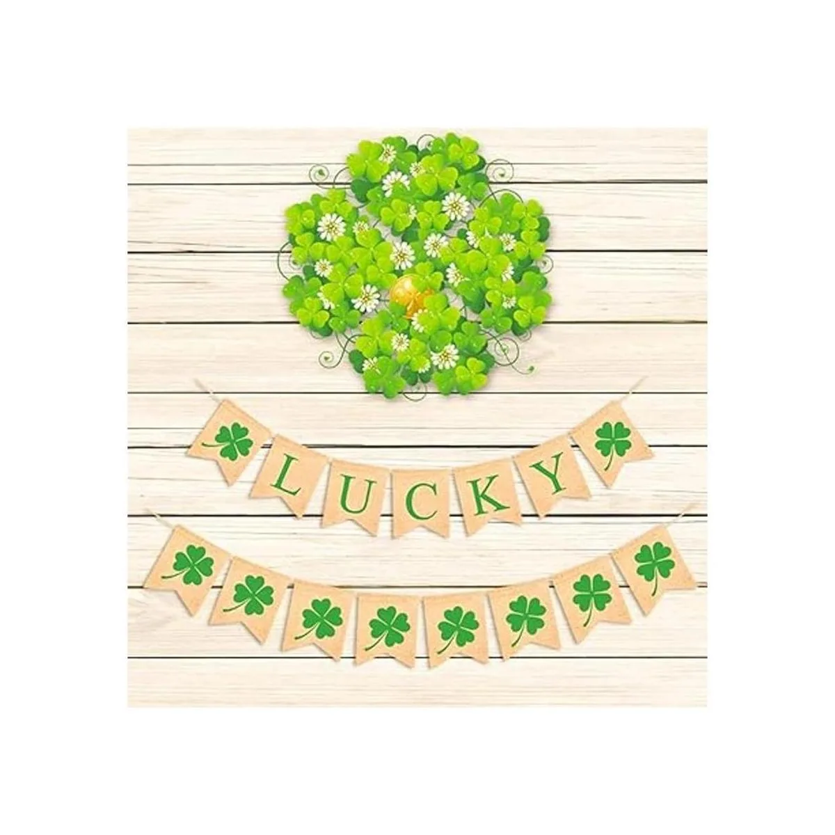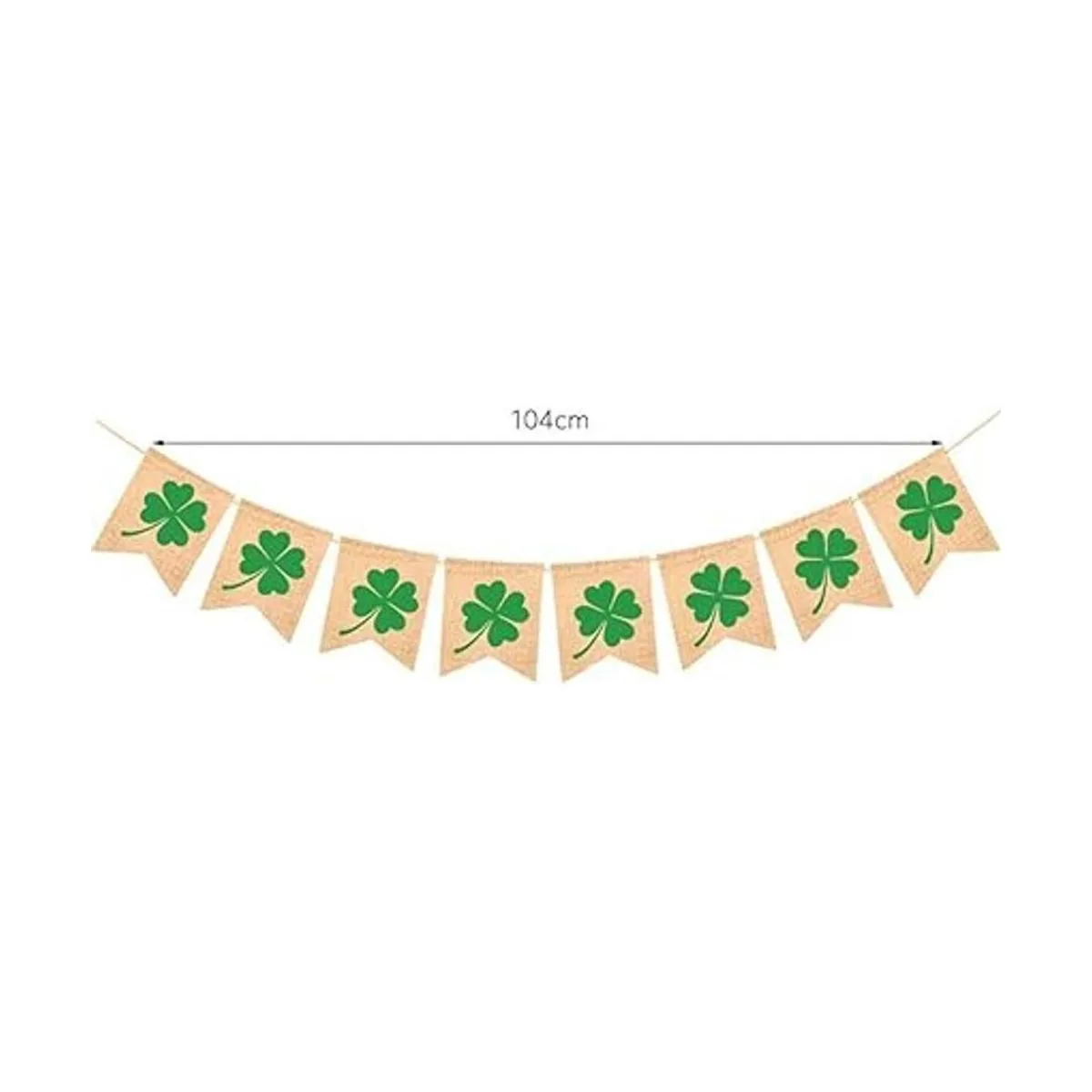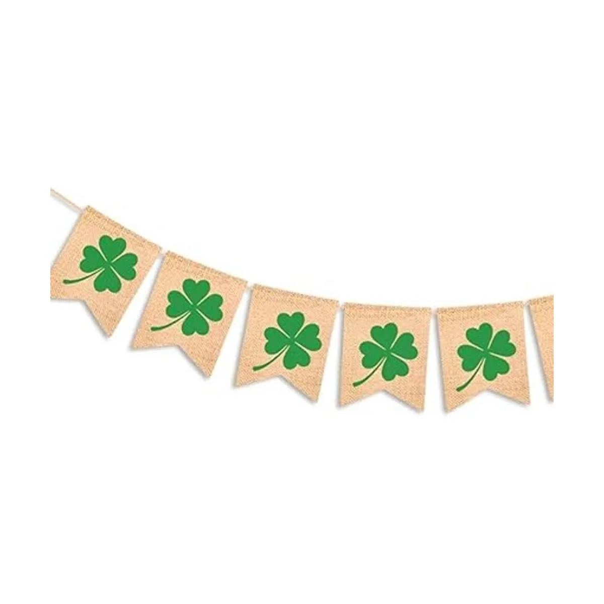 SWYOUN Guirnalda de banderines de arpillera para fiesta de San Patricio, guirnalda de la suerte irlandesa de trébol de cuatro hojas, suministros de decoración de primavera.