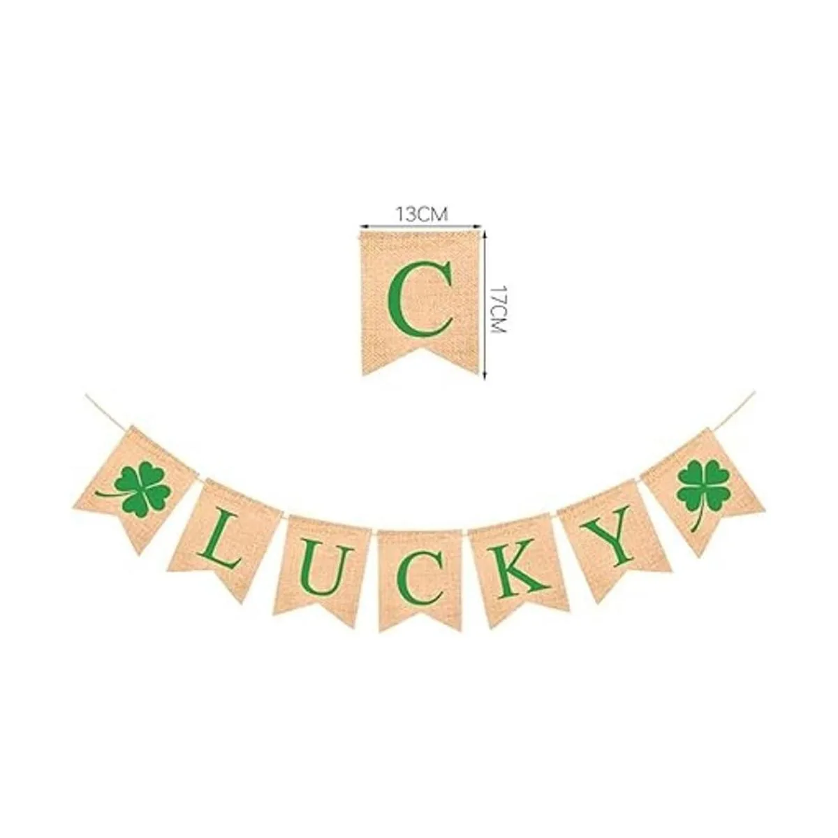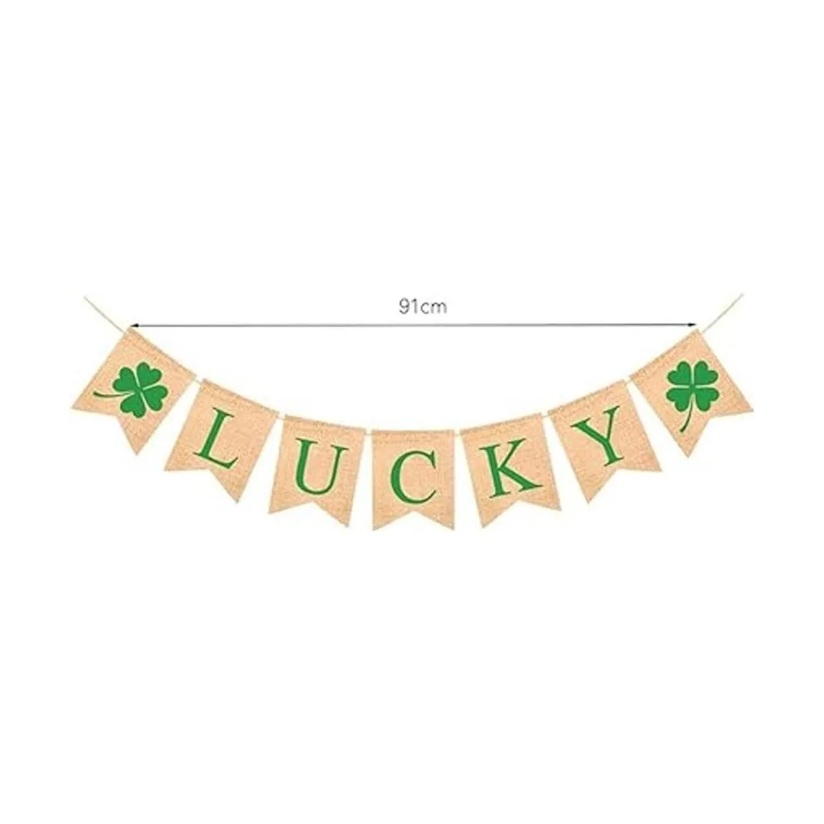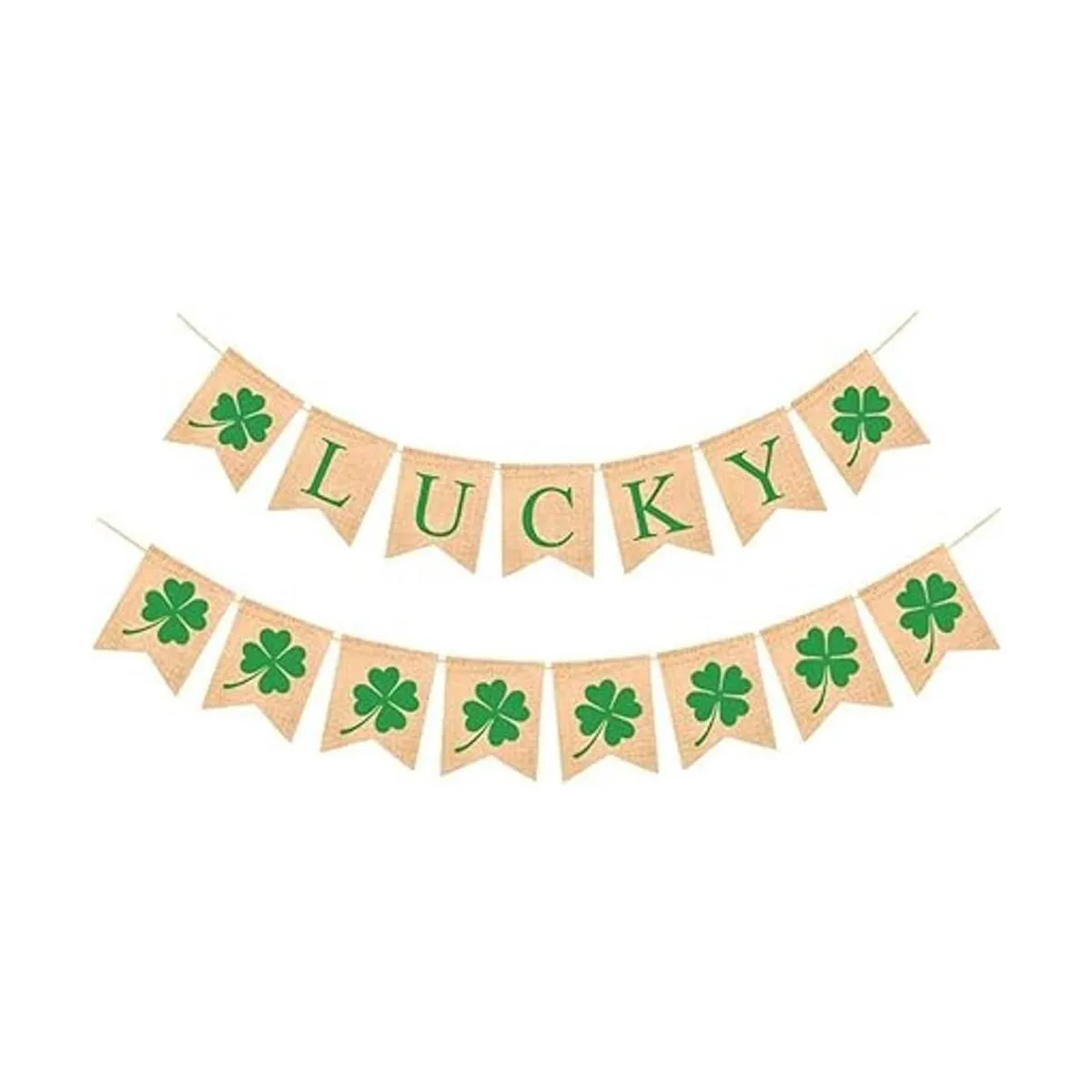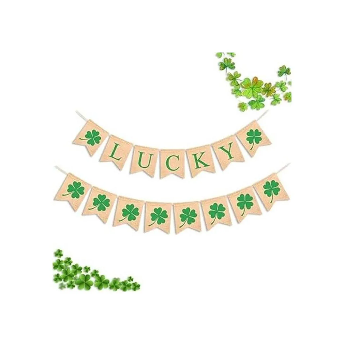 SWYOUN Guirnalda de banderines de arpillera para fiesta de San Patricio, guirnalda de la suerte irlandesa de trébol de cuatro hojas, suministros de decoración de primavera.
