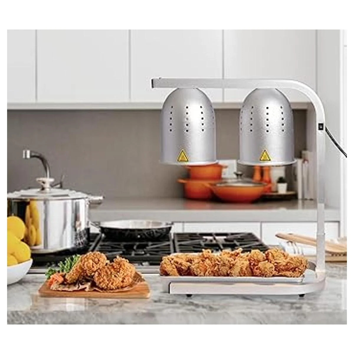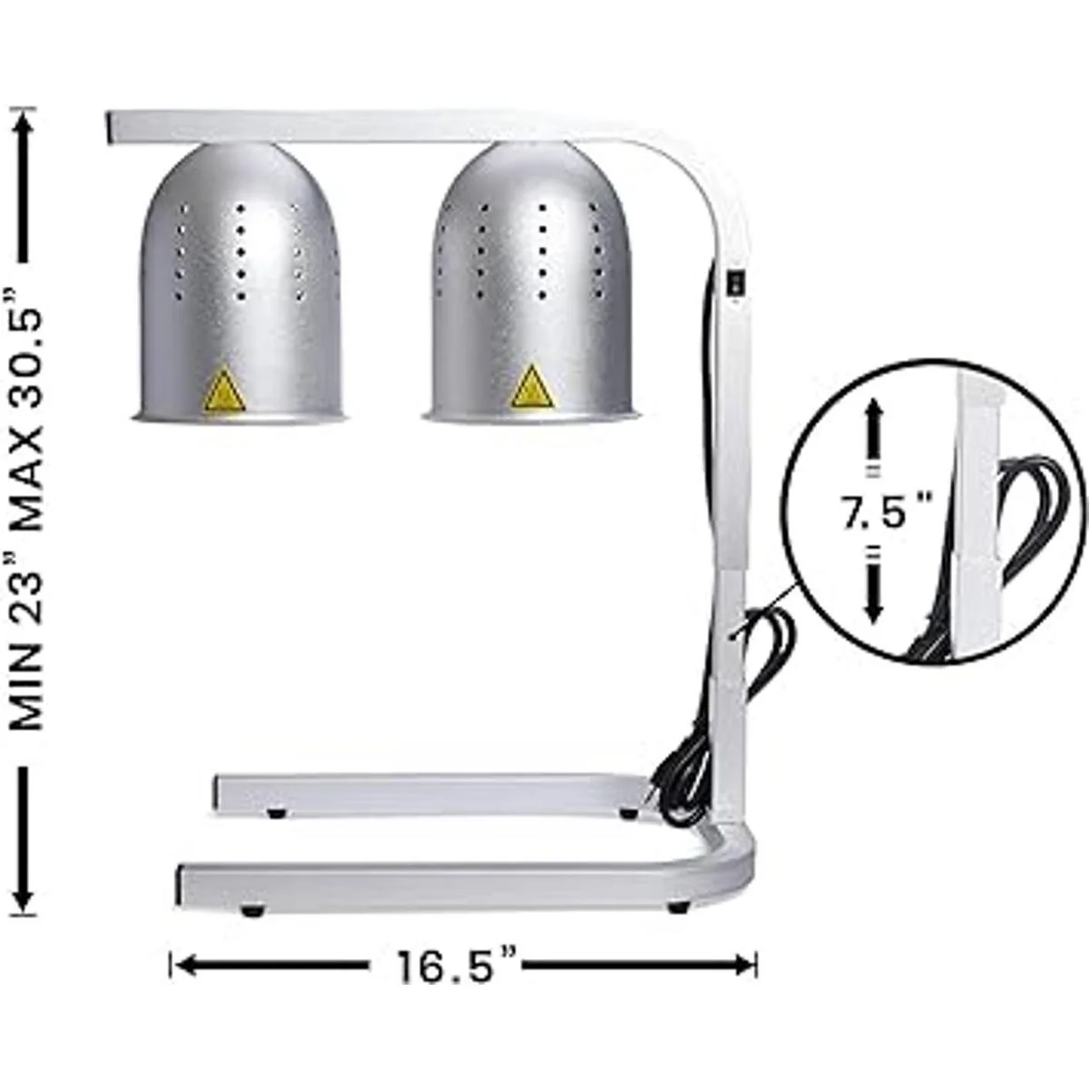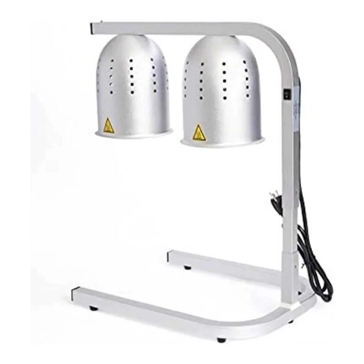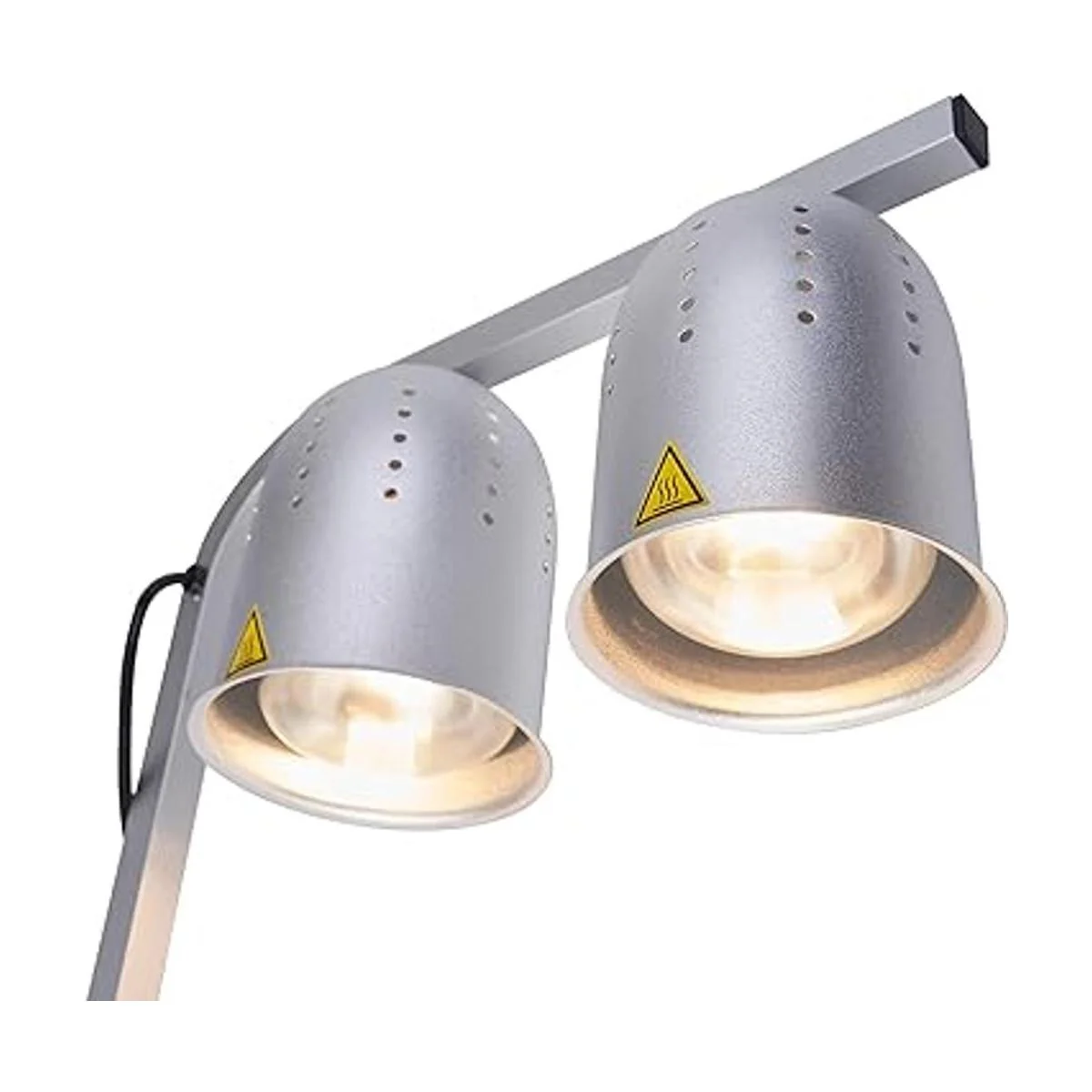 SYBO DL2112 Lámpara de calor de alimentos de grado comercial, calentador eléctrico portátil de alimentos de 2 bombillas con soporte libre, 500 W, plata plata