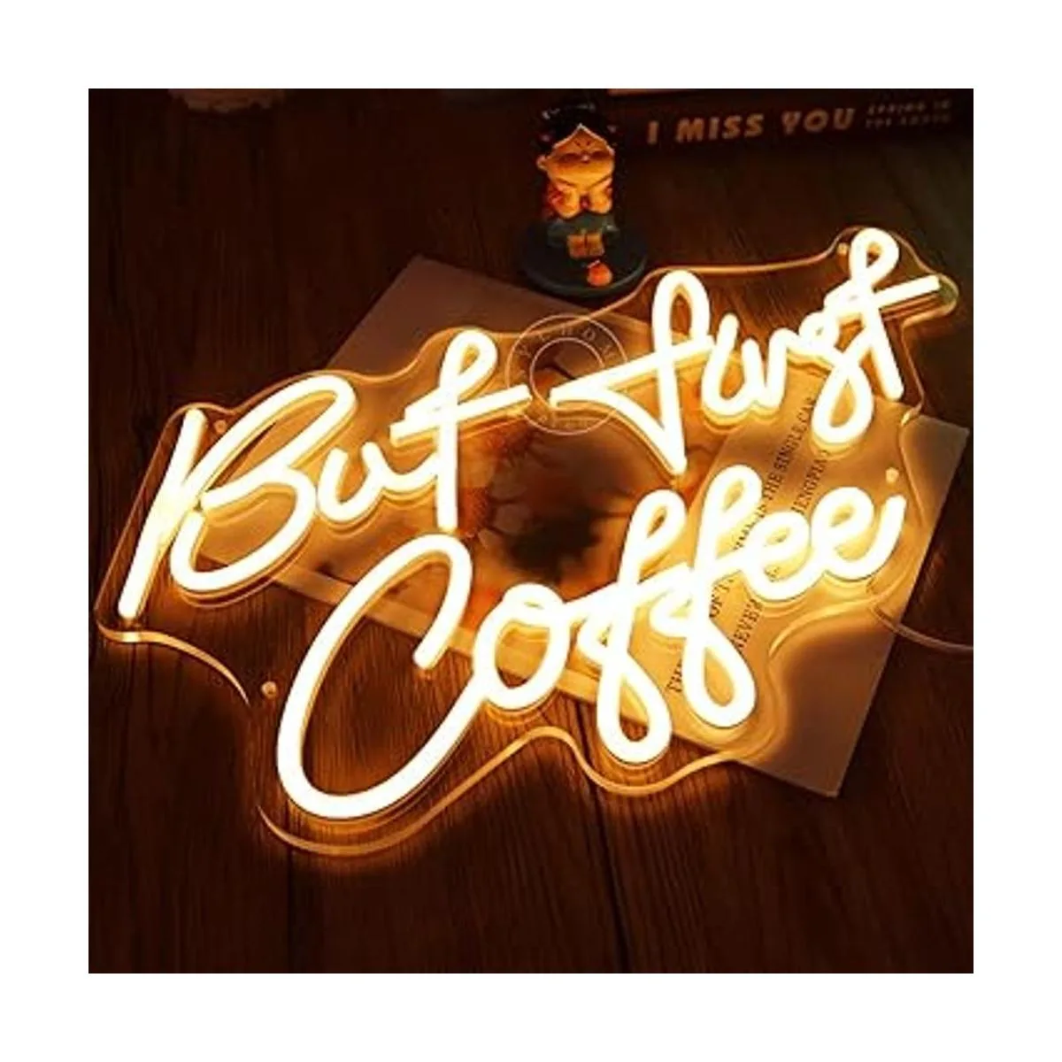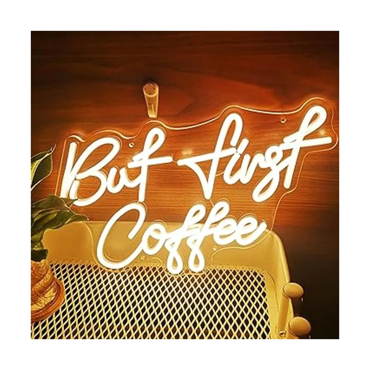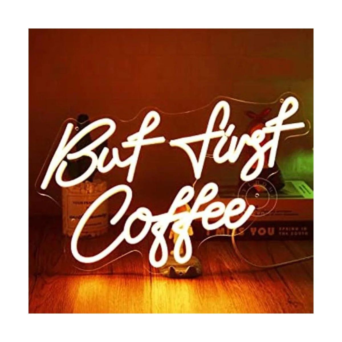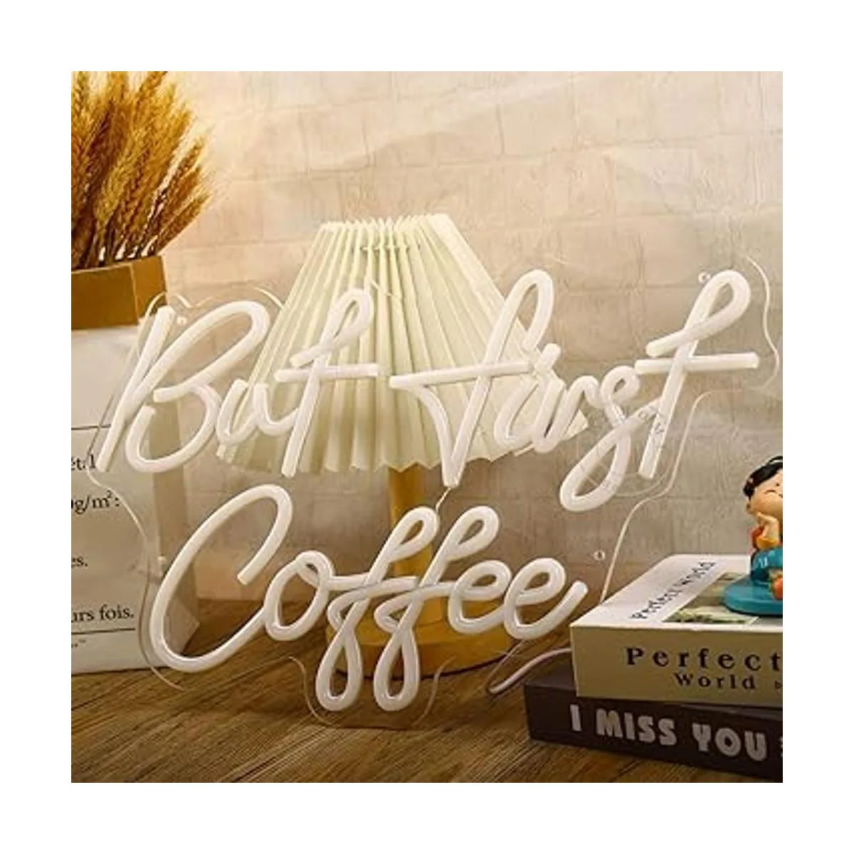 SYLHOME But First Coffee Letreros de luz LED de neón de 12 V para el hogar, dormitorio, cocina, oficina, letrero de decoración de pared para café, cafetería, bar, fiesta, sala de estar, regalos blanco cálido, 17 x 10.2 pulgadas