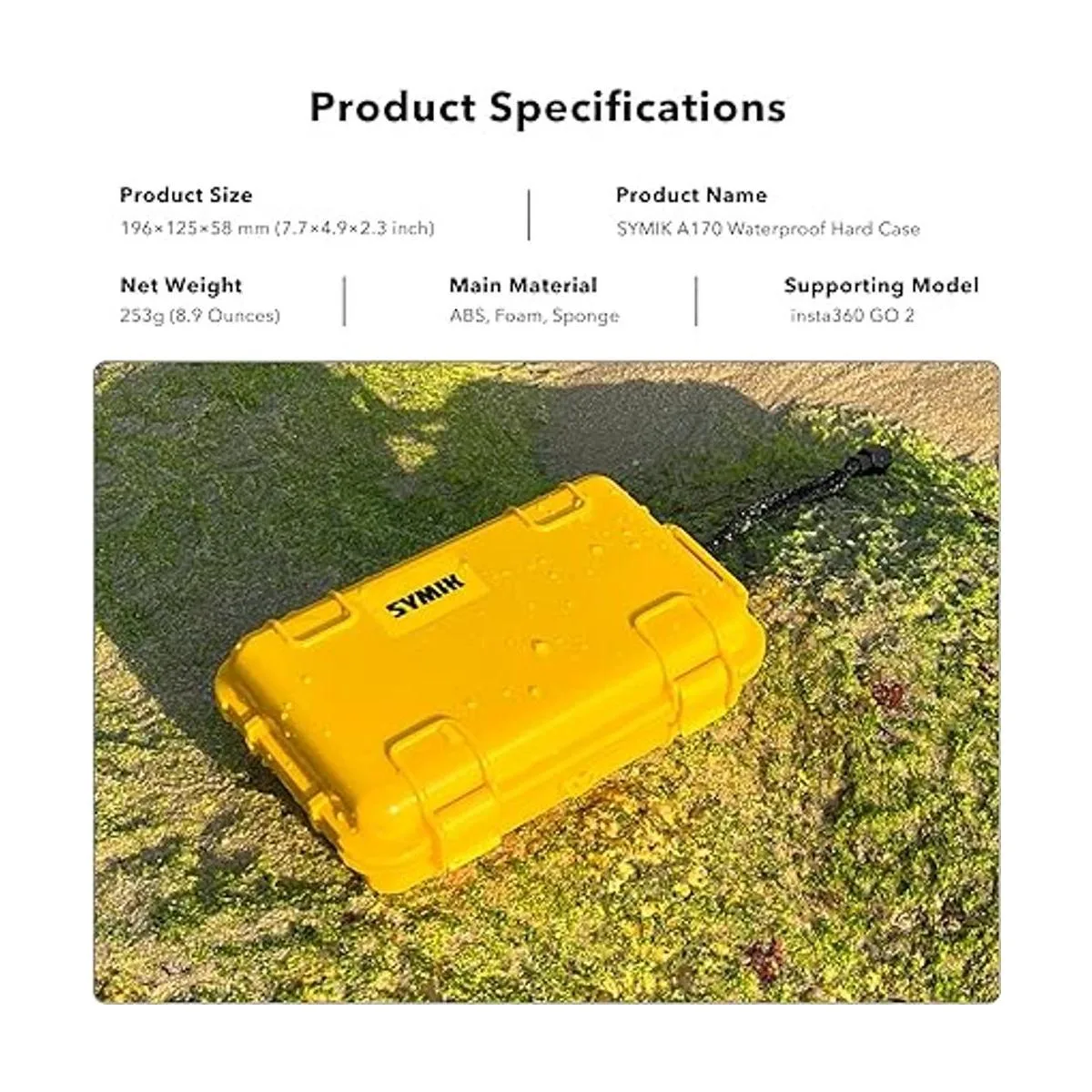 Impermeable y resistente a los impactos: la funda SYMIK A170GO2 está hecha de ABS de alta calidad y está equipada con una junta impermeable de una sola pieza diseñada para IP67 impermeable; con inserto de esponja de alta densidad para una absorción de impactos superior, la funda SYMIK A170GO2 proporciona tranquilidad de protección para tu Insta360 GO 2 y accesorios