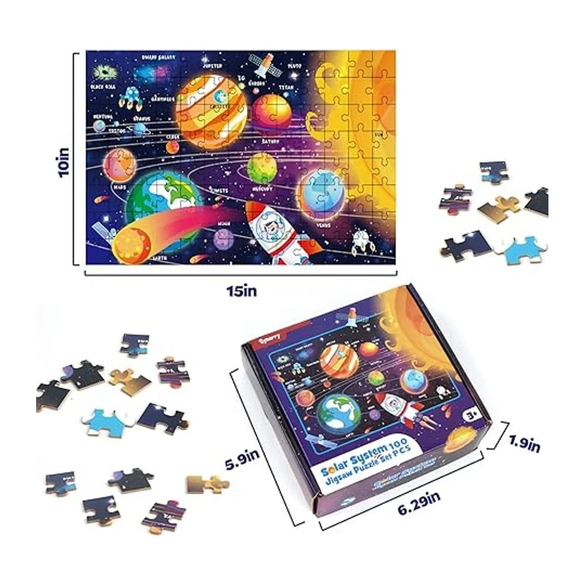 SYNARRY Rompecabezas de 100 piezas para niños, rompecabezas espacial para niños de 4 a 8 años, rompecabezas del sistema solar para niños de 3 a 5 años, rompecabezas de 100 piezas para niños y niñas de 3, 4, 5, 6, 7, 8 años, rompecabezas de planeta divertido con nombres