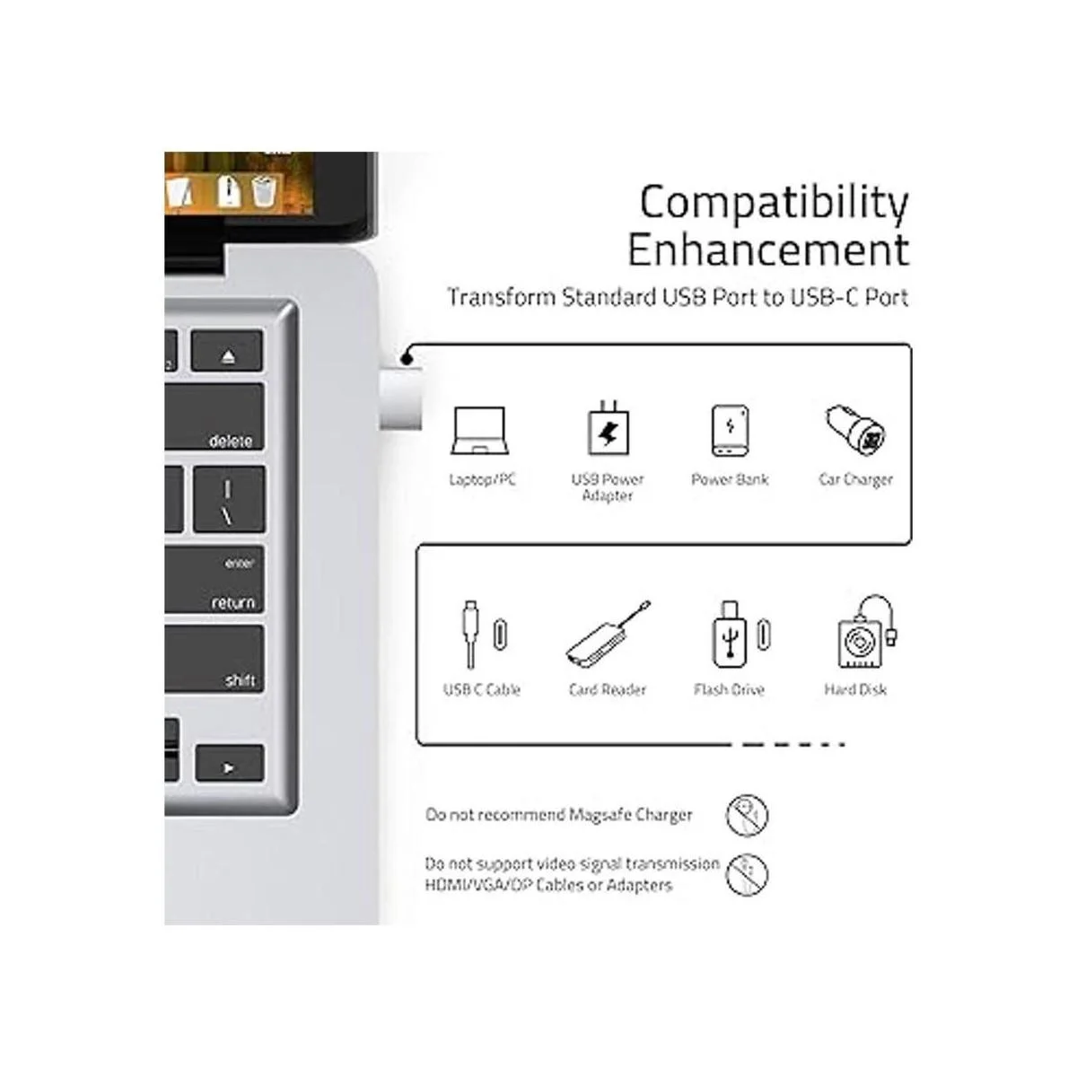 Compatibilidad universal: convierte los puertos USB en puertos USBC para conectar periféricos USBC a dispositivos con puertos USBA integrados. Esto te permite conectar teléfonos, tabletas, unidades flash, mouse, concentradores y otros periféricos USBC a tus portátiles y cargadores con USB normal.