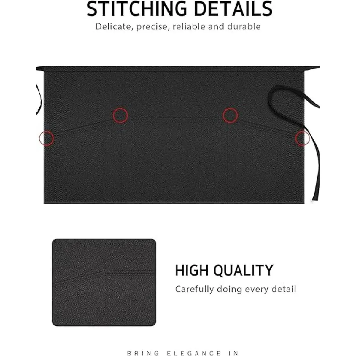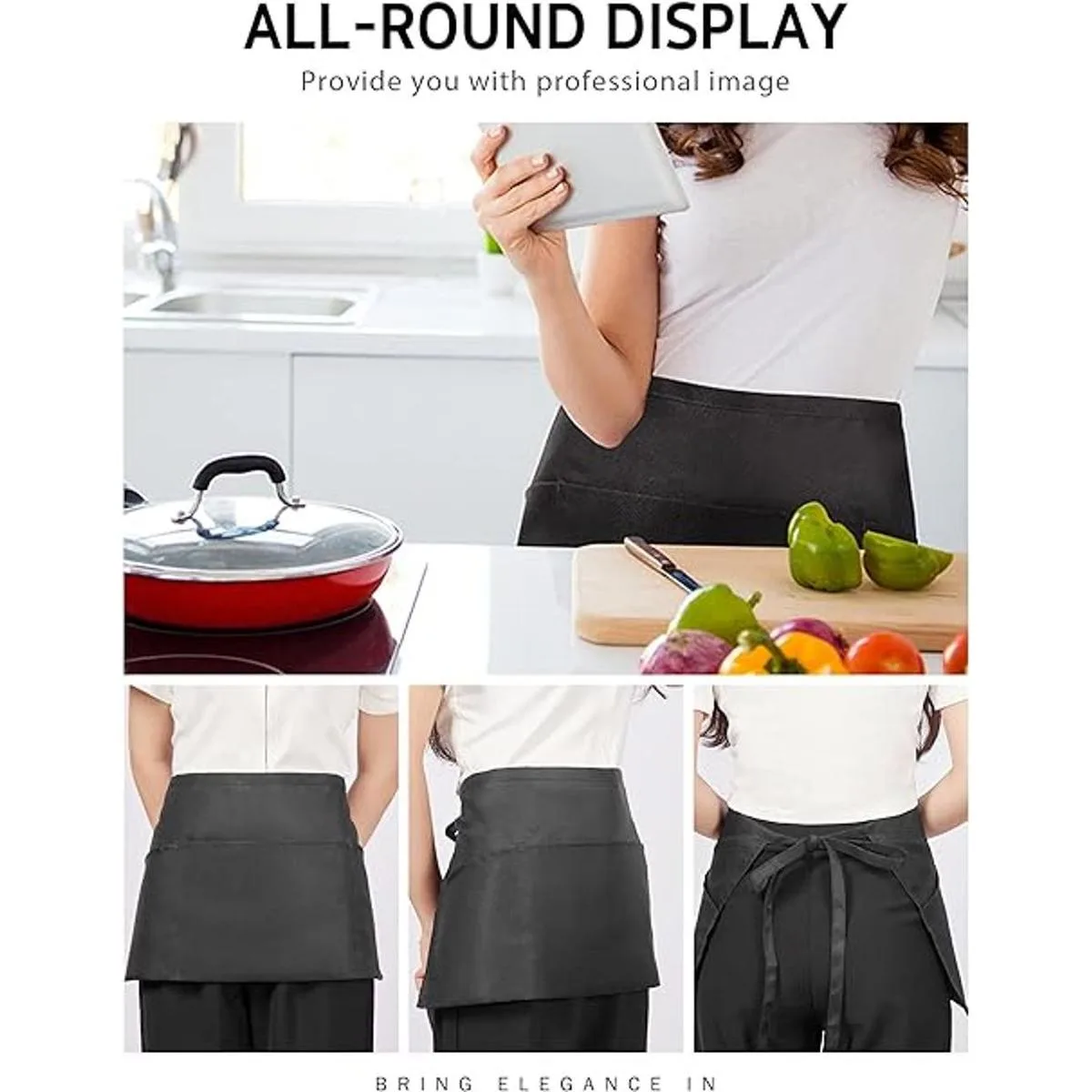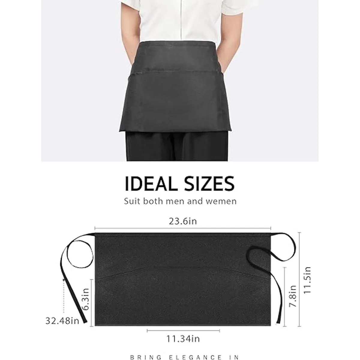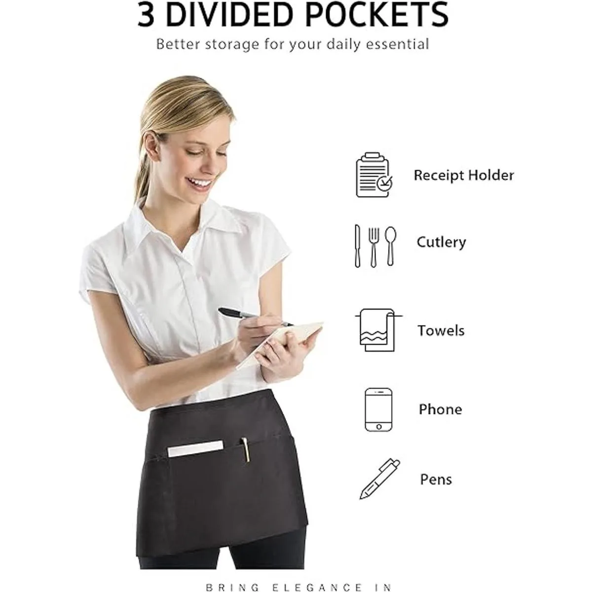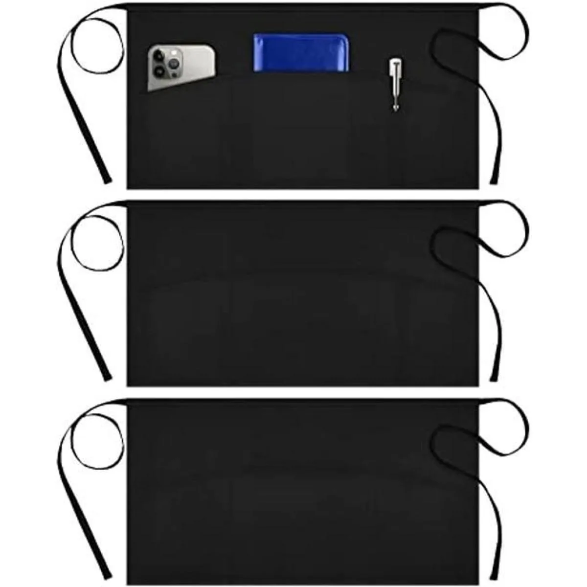 Syntus Paquete de 3 delantales de servidor con 3 bolsillos, resistentes a las gotas de agua, delantal de cintura de camarera, 11.5 pulgadas, color negro