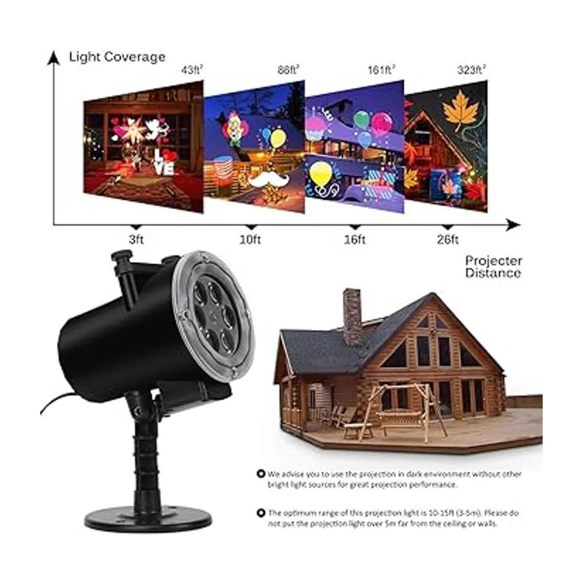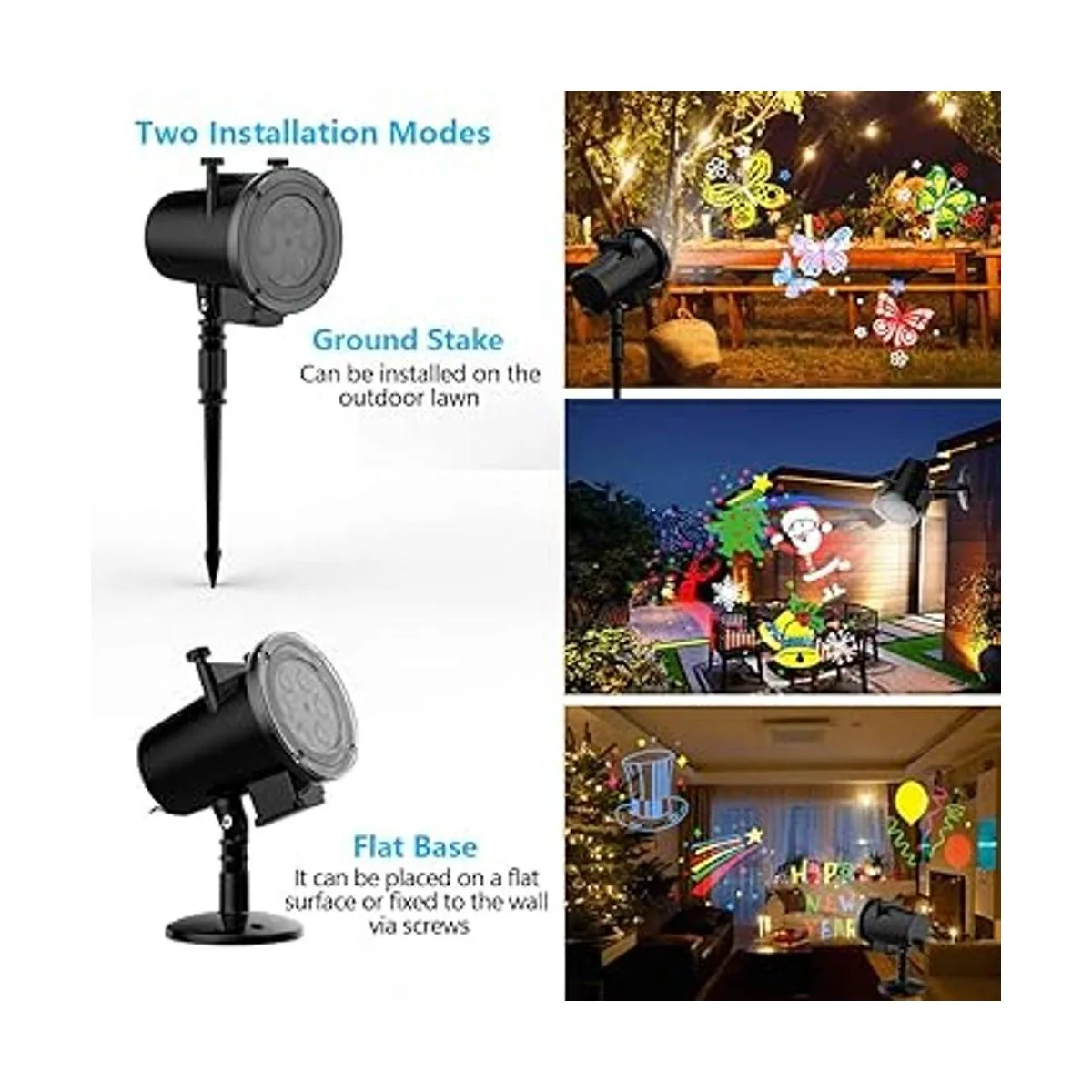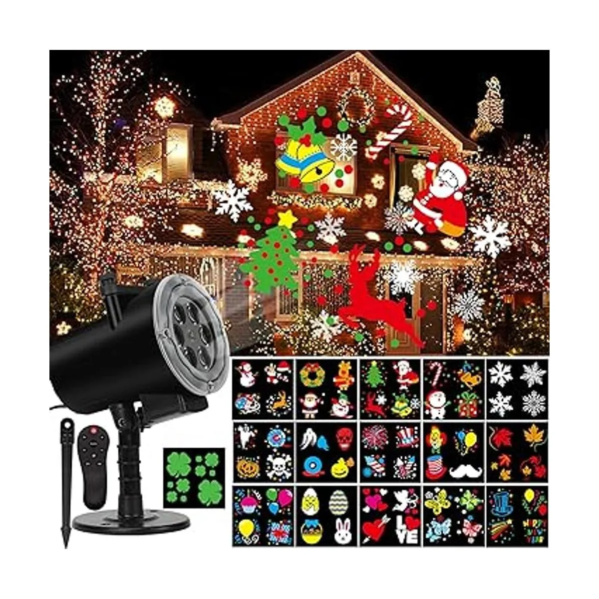 Syslux Luz de proyector de Navidad, 16 luces LED de alta definición, impermeable, para exteriores, con control remoto, para fiestas, jardín, Halloween, Navidad, decoración de paisajes