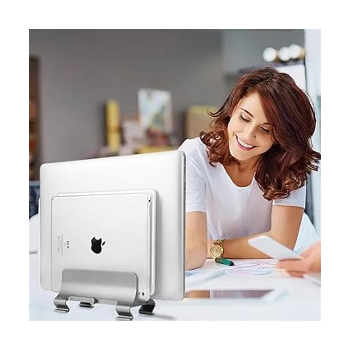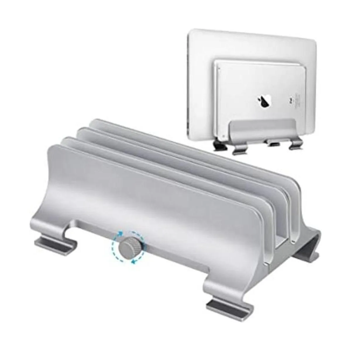 Syslux Soporte vertical para ordenador portátil 3 ranuras, de aluminio, con tamaño de muelle ajustable, compatible con todos los portátiles MacBookSurfaceLenovoDellGaming plata