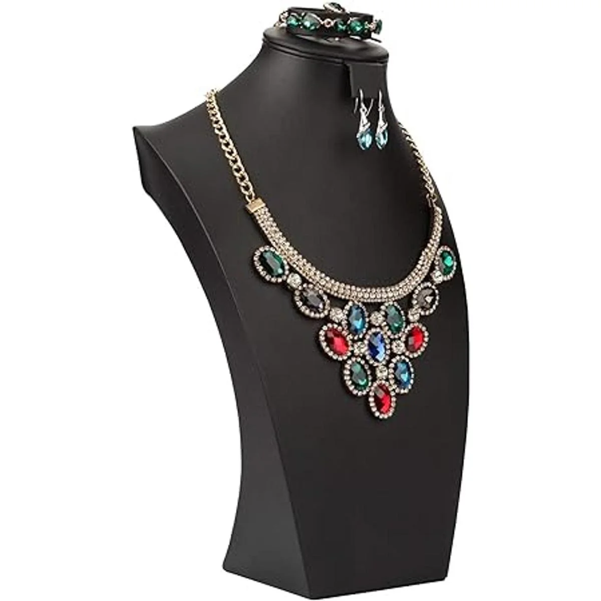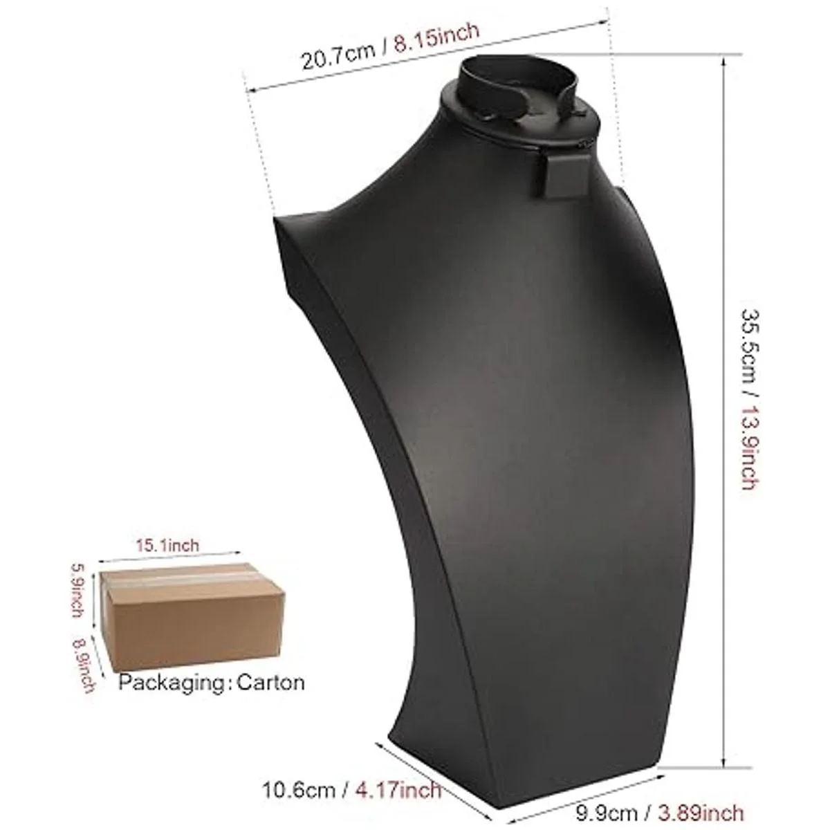 SYYSY Exhibición de joyas, busto de exhibición de collares, soportes de exhibición de busto de joyería de cuero negro, soporte de joyería para collares, pulseras, aretes, anillos H13.9 pulgadas