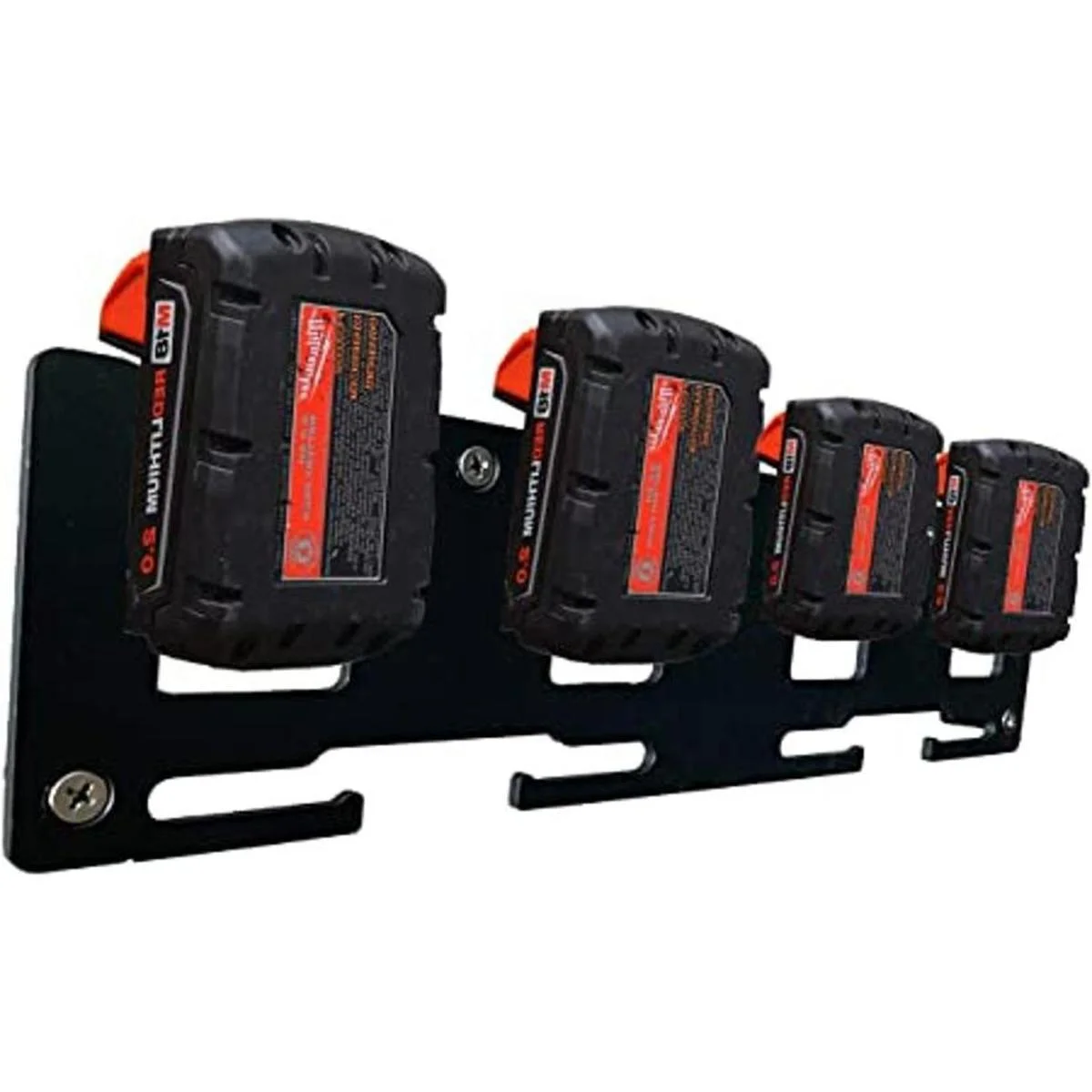 SZWJTLV Milwaukee M18 Soporte para batería 4X, soporte de gancho para exhibición de pared, batería M18 de 4 bits, almacenamiento de herramientas eléctricas, soporte de gancho para exhibición de pared material de aluminio
