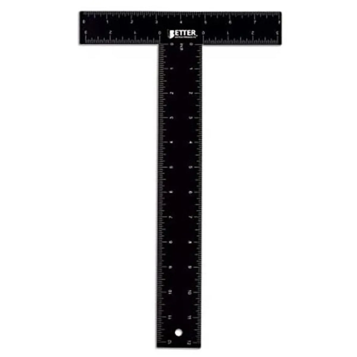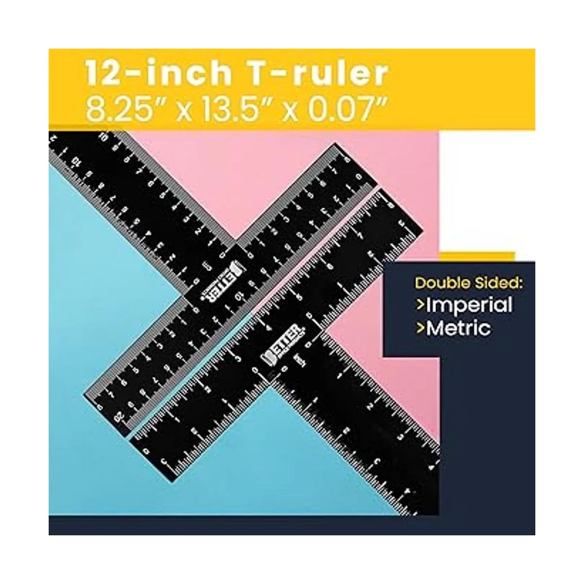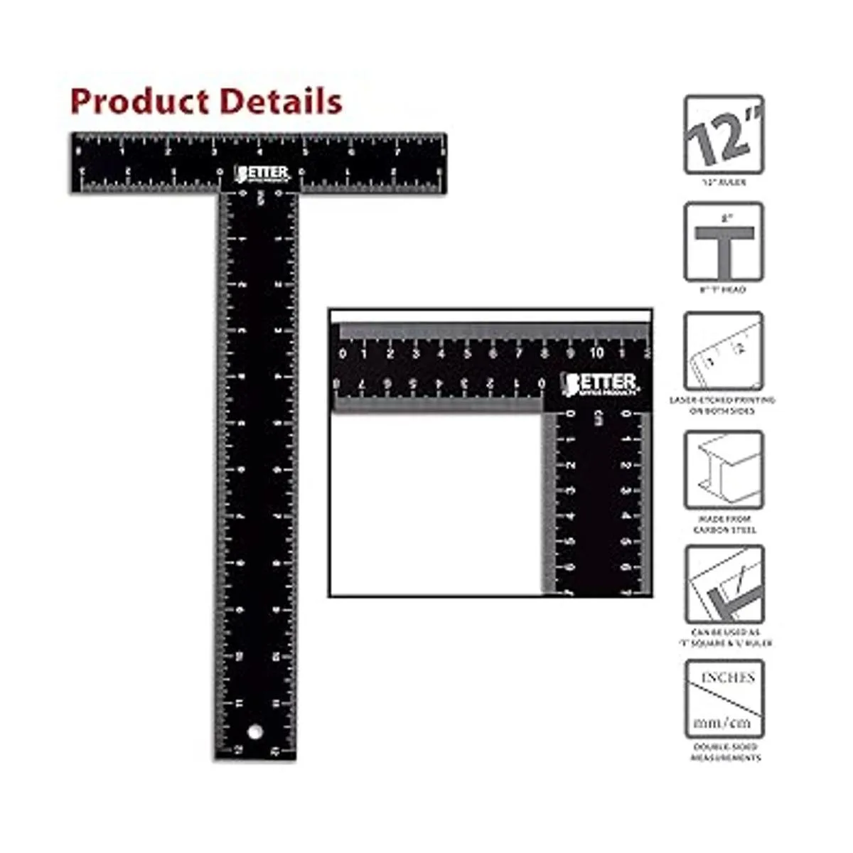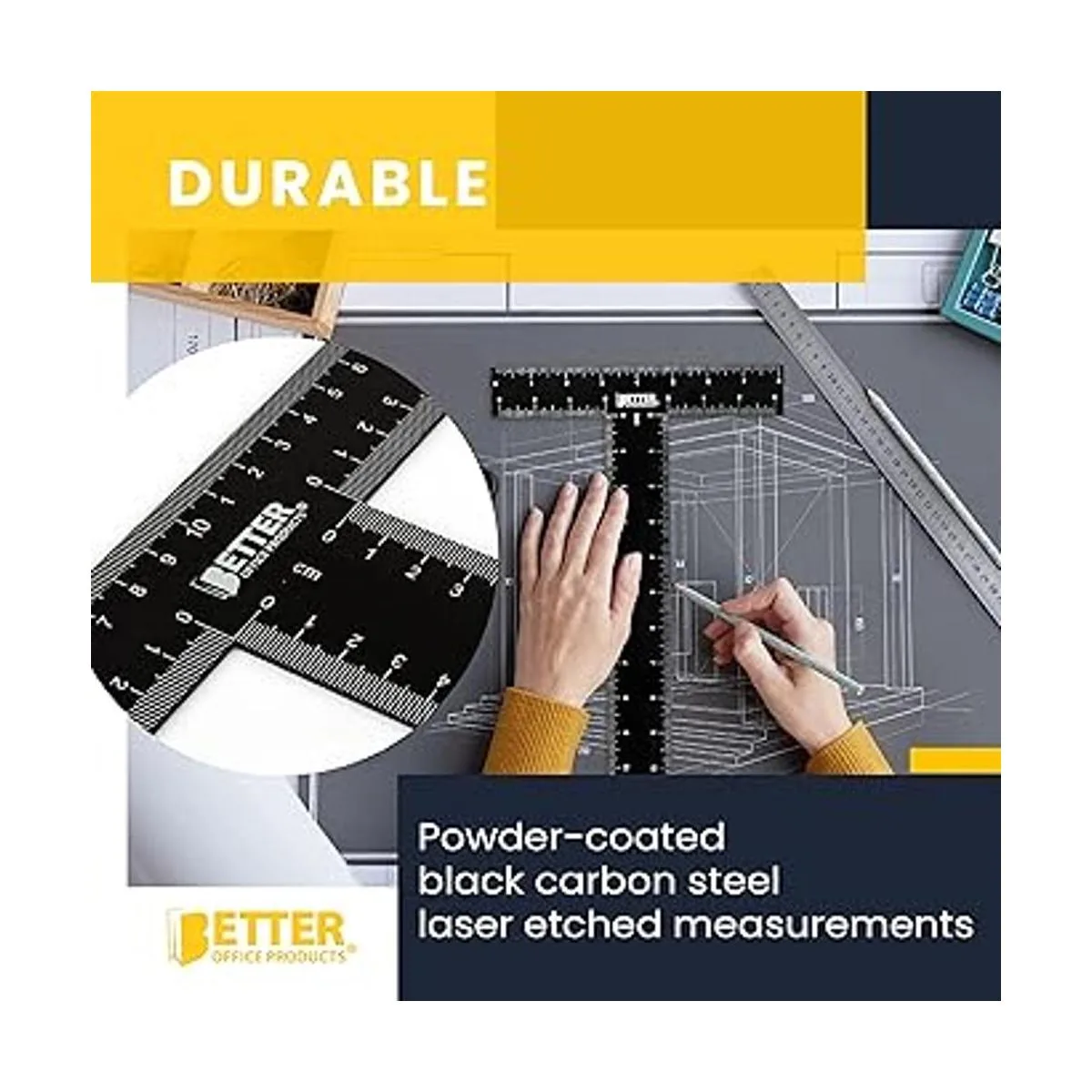 T Square, regla T, regla de metal en T de 12 pulgadas, regla de acero al carbono, estándar y métrico de doble cara, impresión láser, por Better Office Products, regla de redacción, regla de arquitecto, regla de compañero cuadrado, color negro